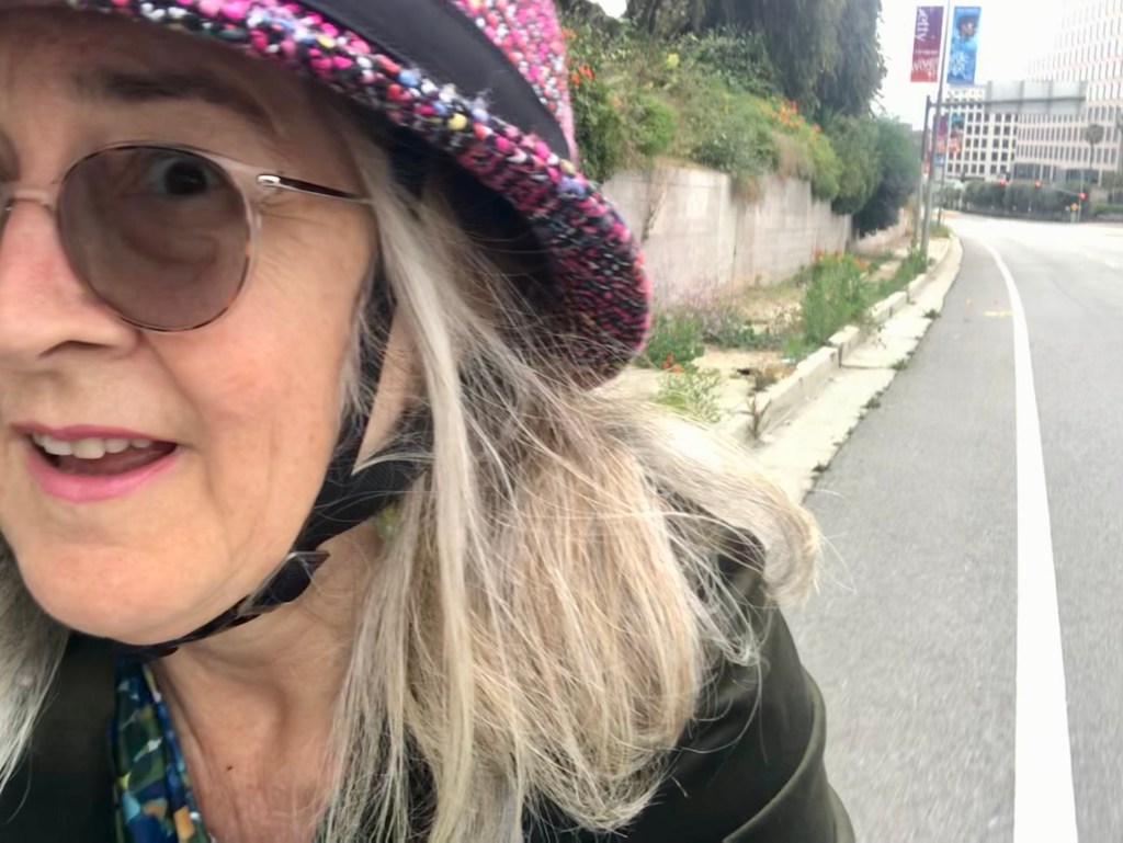 Now that folks around here are vaccinated, some social events are coming back. One that I missed was the biweekly coffee meetups with Women on Bike Culver City. Every other Monday (in prepandemic times), they would pick a different coffee shop and invite others to either meet at the coffee shop, or join up for a ride together. It’s a friendly, welcoming group that makes a point of supporting and encouraging women who might not be seasoned riders to venture out and get more comfortable biking around town. Although they’d had some socially distanced meet ups at parks during the pandemic, those meetups had not lined up well with my working-from-home schedule. But here was a Monday when they were back to meeting at a coffee shop (one with outdoor seating), and I was free that morning. It was a small group, but a delight to see two familiar friends and meet a new one. The downside was, it had been a long time since I’d last biked the Venice Boulevard bike lanes during morning rush hour, and that was stressful and miserable. Drivers have always been bad on that street, but they gotten worse during the pandemic: driving much too fast and passing bicyclists much too closely as we navigate the door zone bike lane.