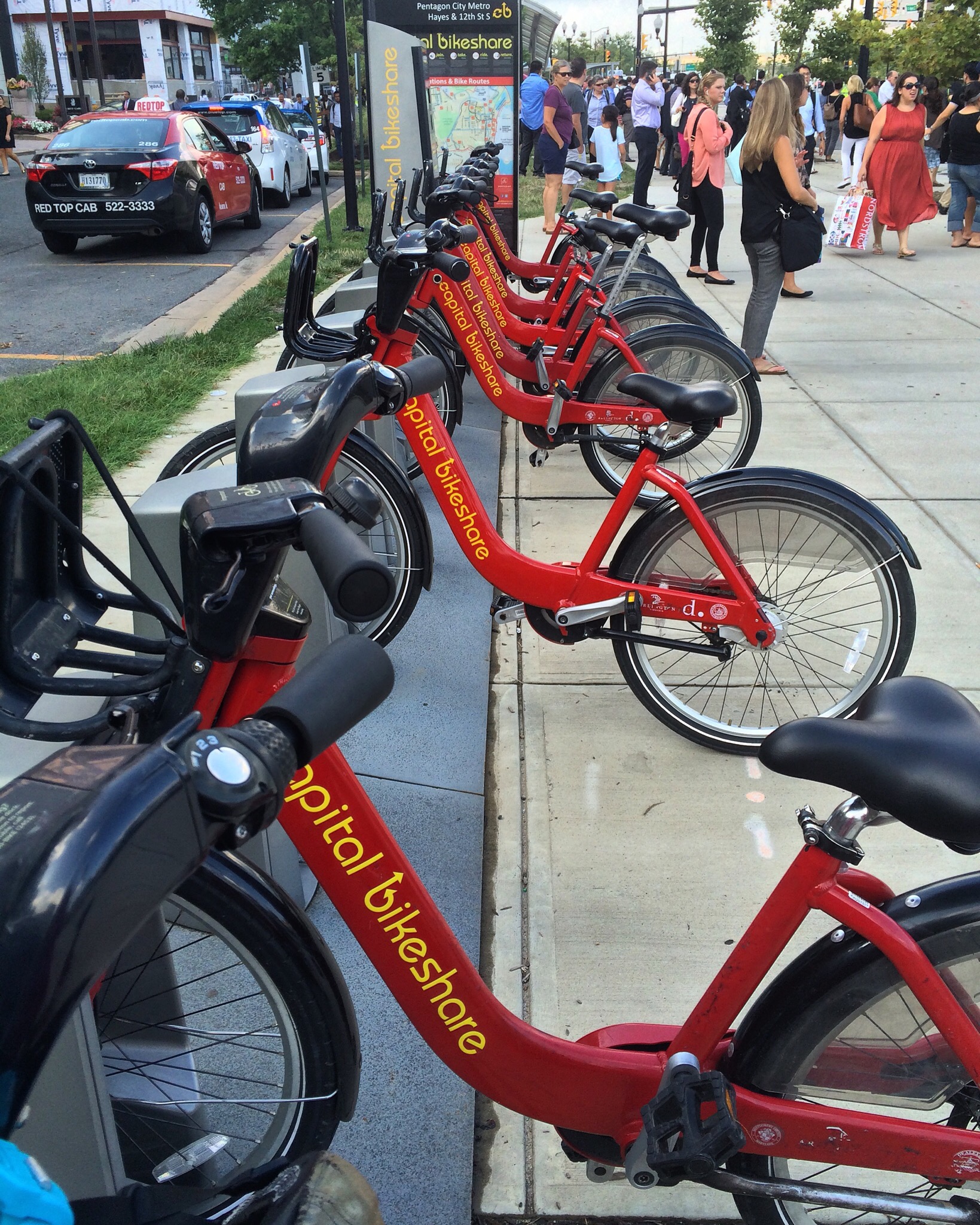 The following morning, I needed to get from Alexandria to Crystal City for my Board meeting, and then from there on to the airport for my return trip. Debbie dropped me and my luggage off near the King Street station, and I had fun figuring out how to secure my luggage onto a Captial Bikeshare bike. Luckily, my luggage for this short trip consisted of a tote bag and my briefcase. I don’t think I could get a suitcase of any kind on one of those bikeshare bikes.