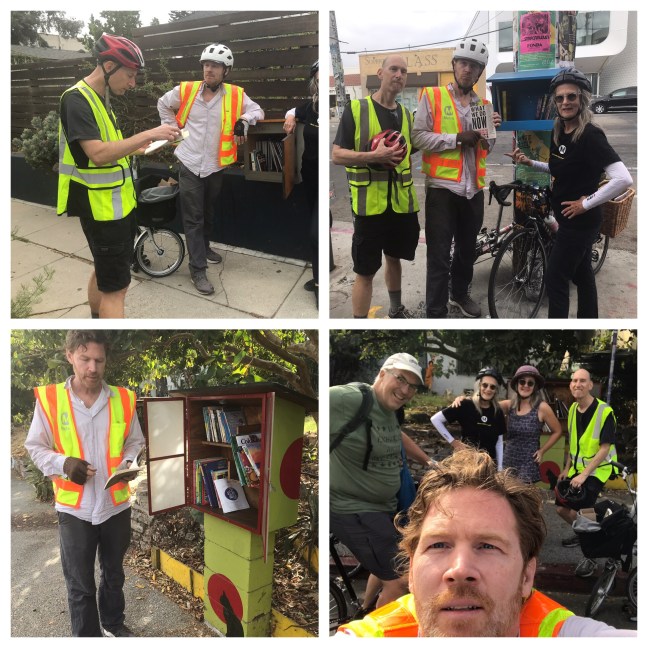 Notes: The Street Librarians Ride always has a theme. This time the theme was Day of the Dead. As we stop to do our re-stocking at each Little Free Library, we also take a moment to share a reading, usually in line with the theme. For my turn, I read from a children’s book called “What is Death?”