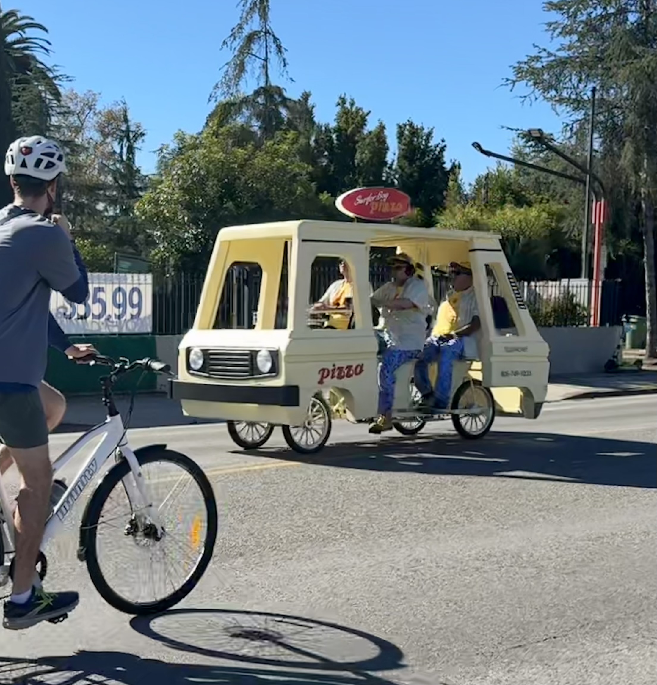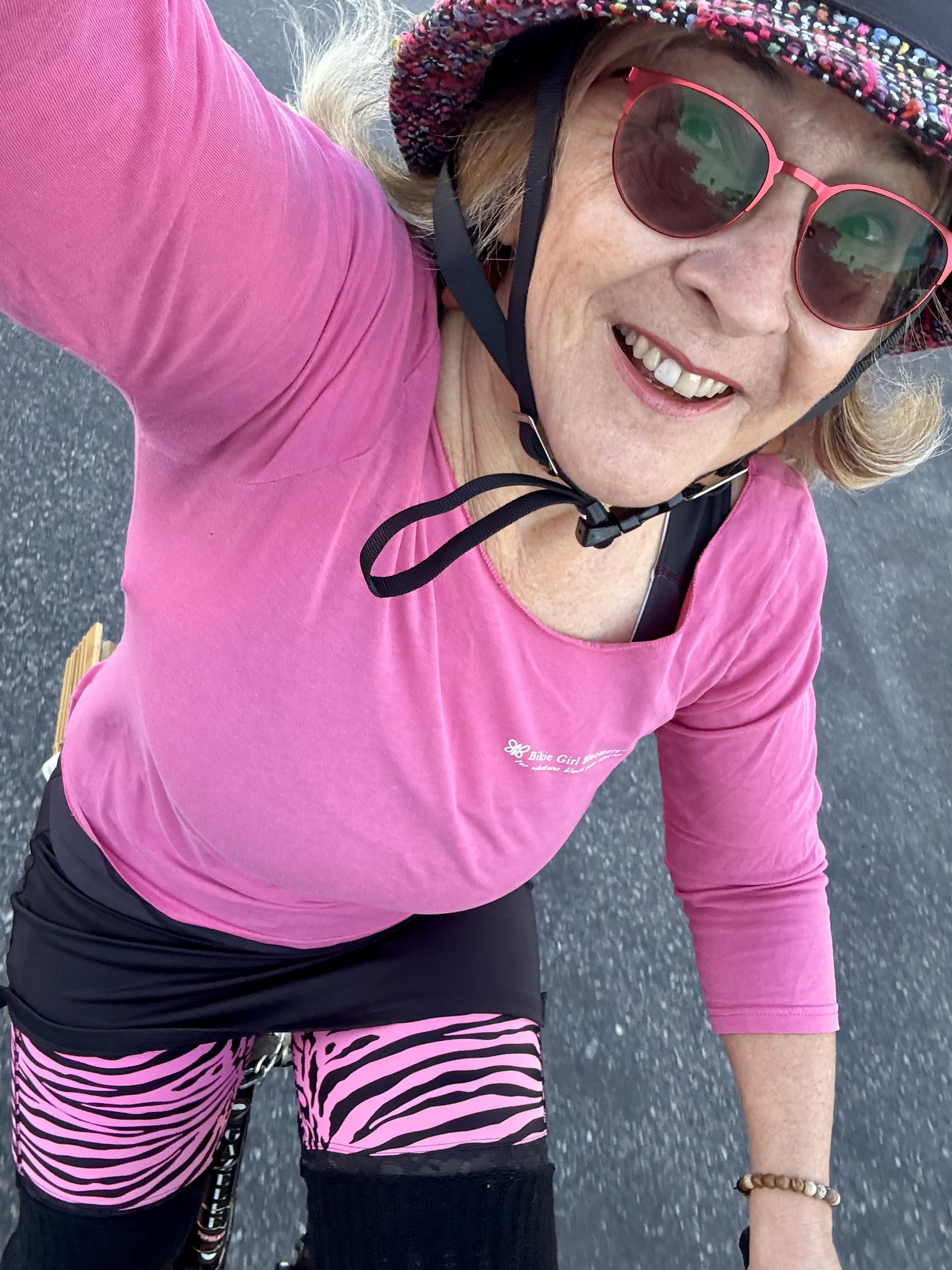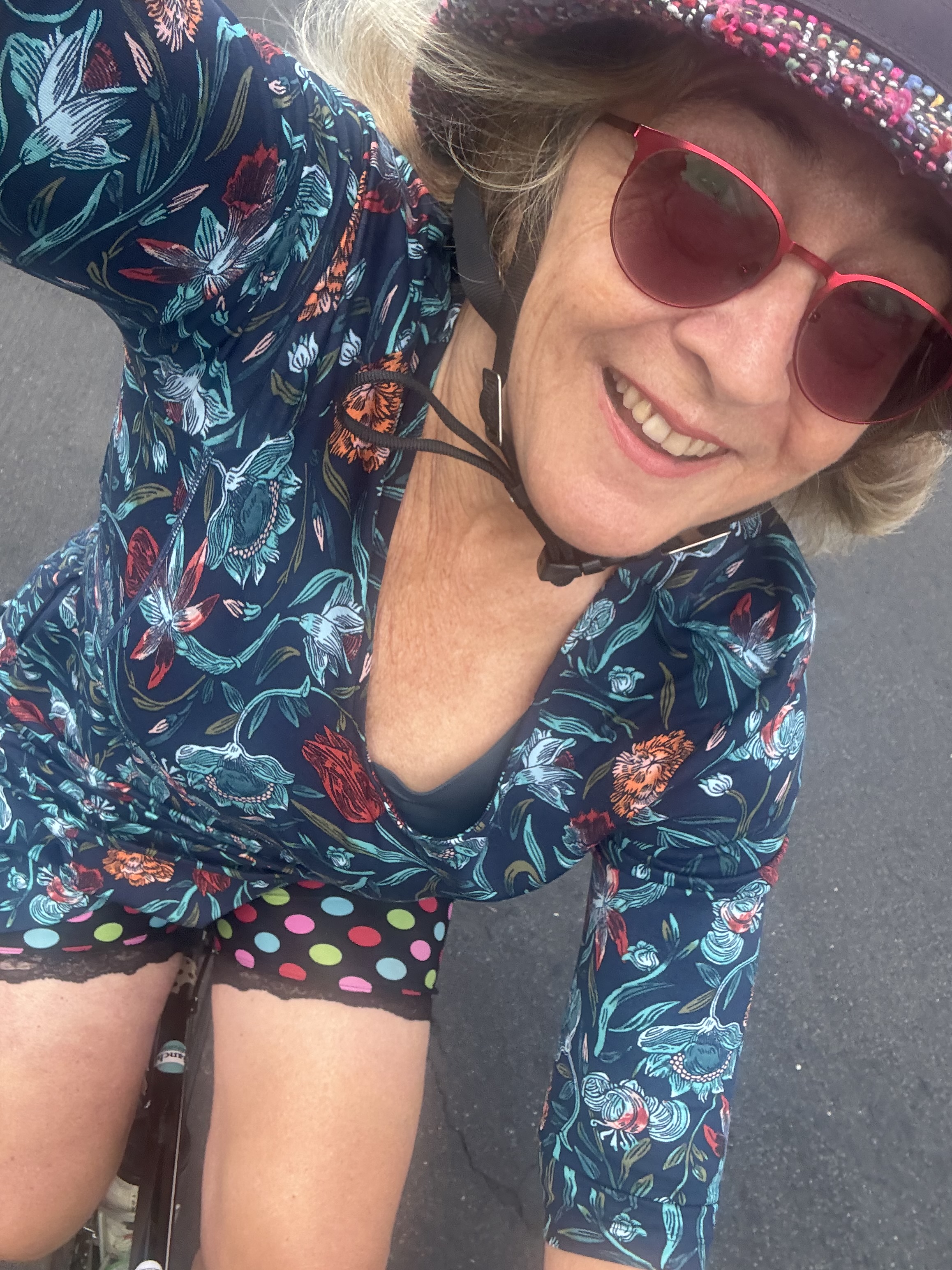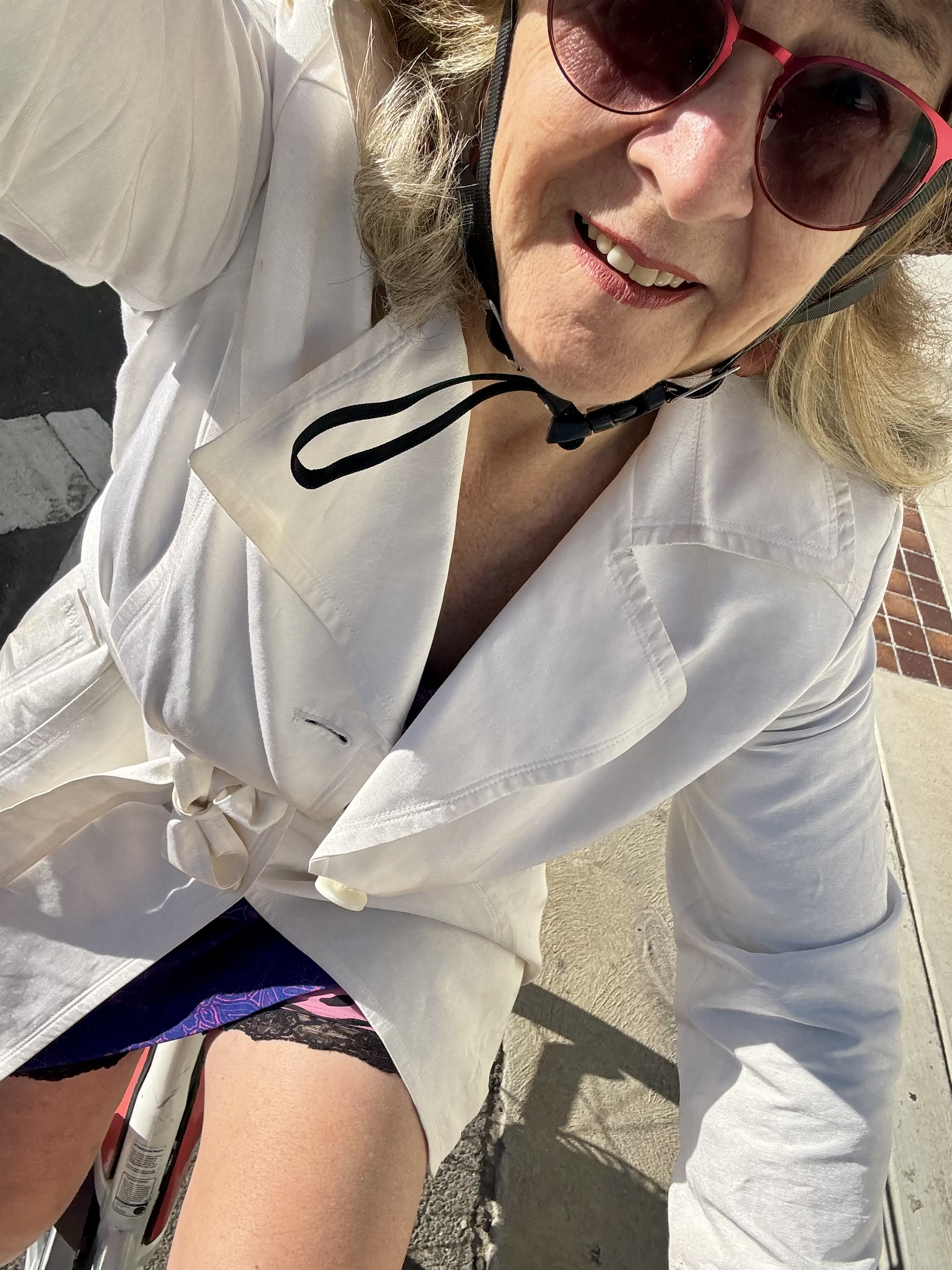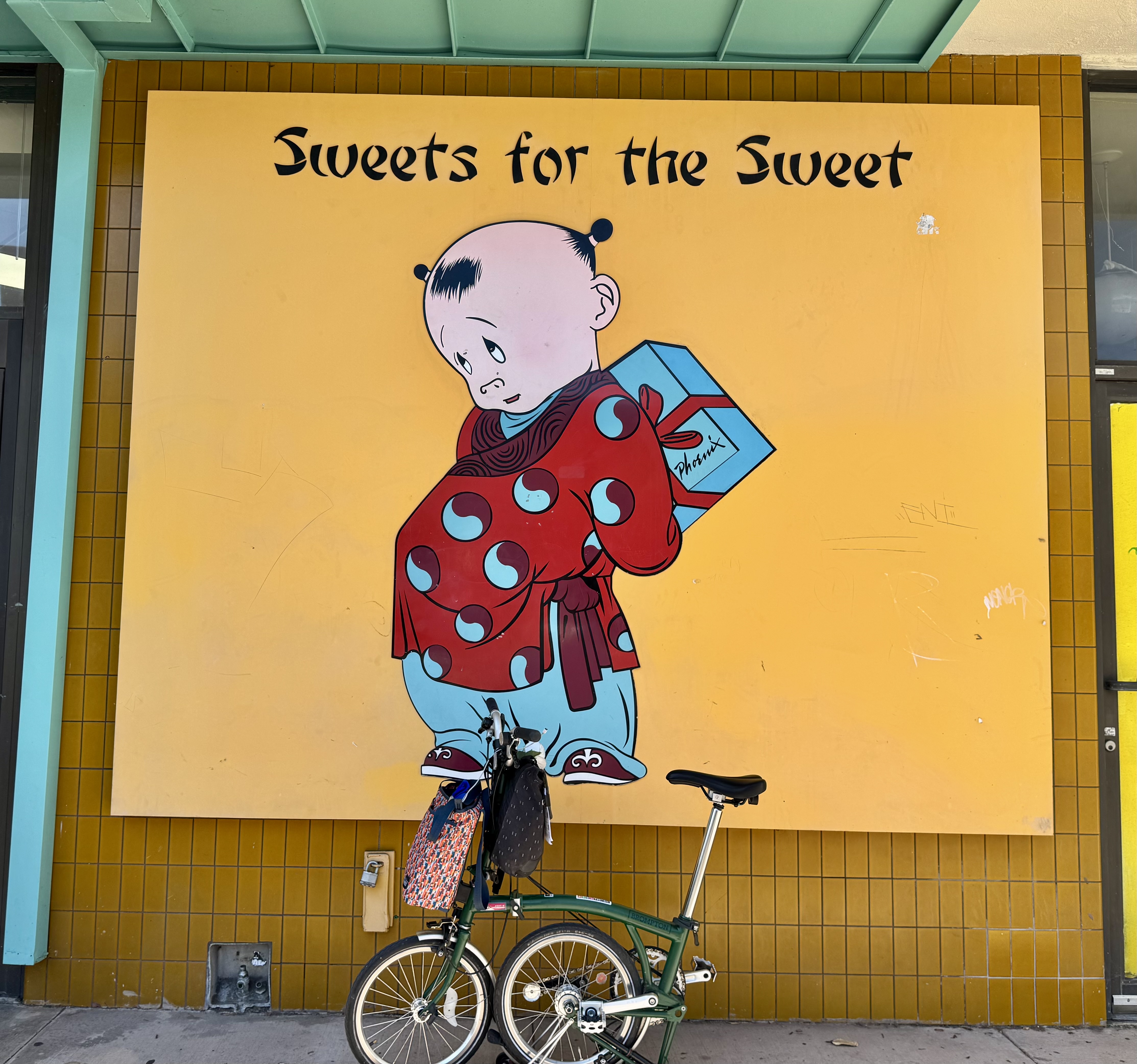 After lunch, we followed the Chinatown leg of the route. There we stopped at a bakery to pick out cake to celebrate Lynn’s birthday. And because I was wanting to visit Zinc Cafe and the Arts District (it was on the Instagram list of beautiful coffee places AND it was very close to the CicLAvia route), we had planned to meet (Joni, Jennifer, Lynn and me) there. Along the way, I rode alongside Carolin Kewer, the creative force behind the legendary Art Crash rides that used to happen from time to time in the pre-COVID era. She is one of my favorite examples of a woman who knows how to ride in style!