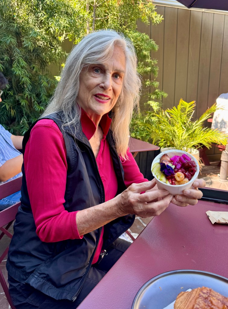 Unfortunately, Zinc did not appear to be a place where we could bring in our own cake, so we opted instead for the nearby Blue Bottle Coffee, which has a bench along the sidewalk out front. I had to try their intriguing NOLA Shakerato (a latte shaken over ice with vanilla), and we had us a beautiful time enjoying our beverages and Lynn’s birthday cake right there. I will have to save Zinc for another day.