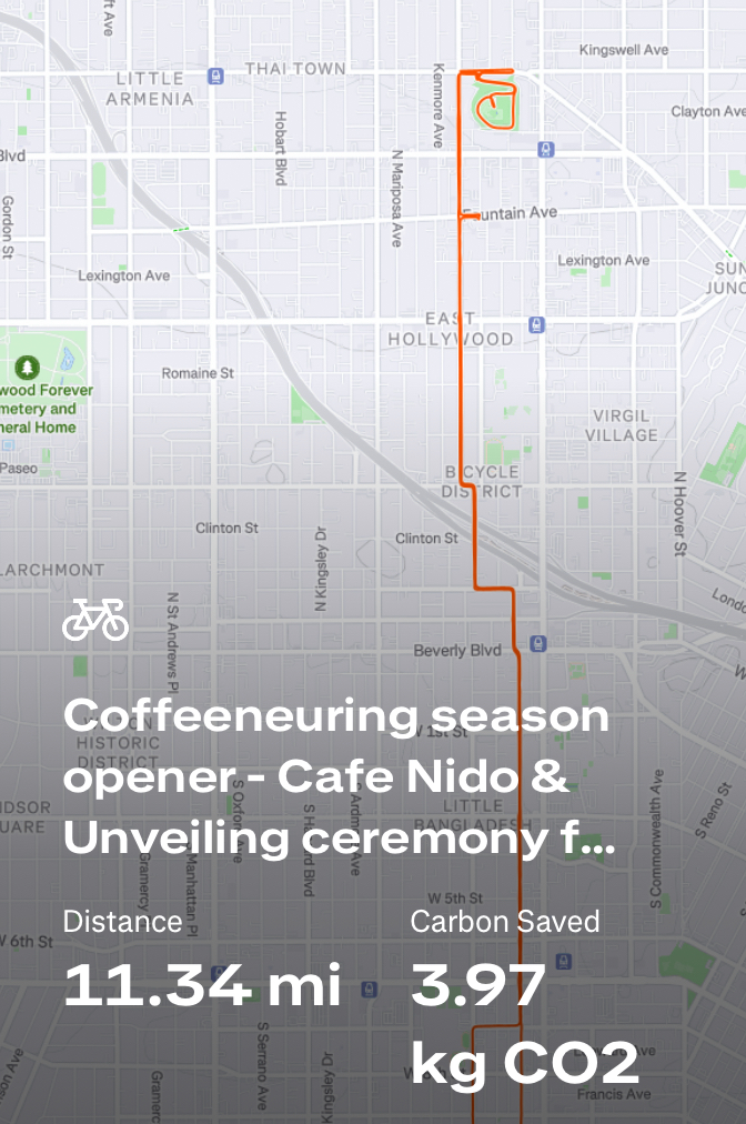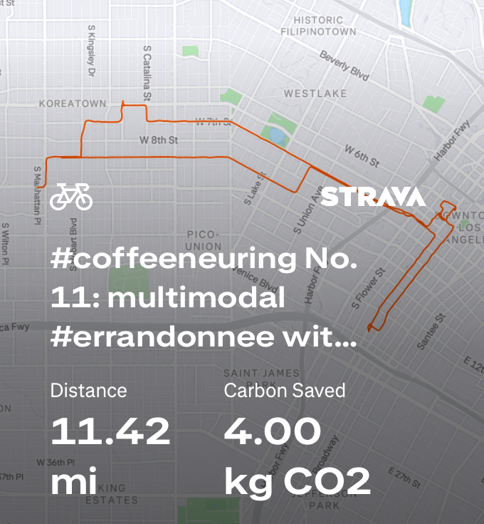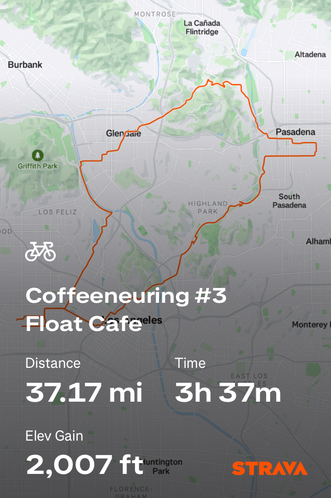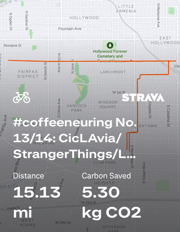 Each year the Challenge embraces a theme. This year’s theme is a nod to the 15th year: “You’re Only 15 Once”. One of the joys of the coffeeneuring community is seeing how different participants will interpret or express the theme in different ways. An optional feature is to develop a theme within the theme (visiting a particular category of establishment, trying a favorite food or beverage at each coffee shop, meeting up with friends, exploring different parks or trails, etc.). I started out this year deciding my theme would be seeking out coffee shops that are beautiful. This was inspired by an Instagram post that named a list of beautiful places to drink coffee in Los Angeles, or something like that. Along the way, however, it occurred to me that I just might be able to get in 15 coffee rides during the dates of the challenge, so why not make that part of the “You’re Only 15 Once” theme?