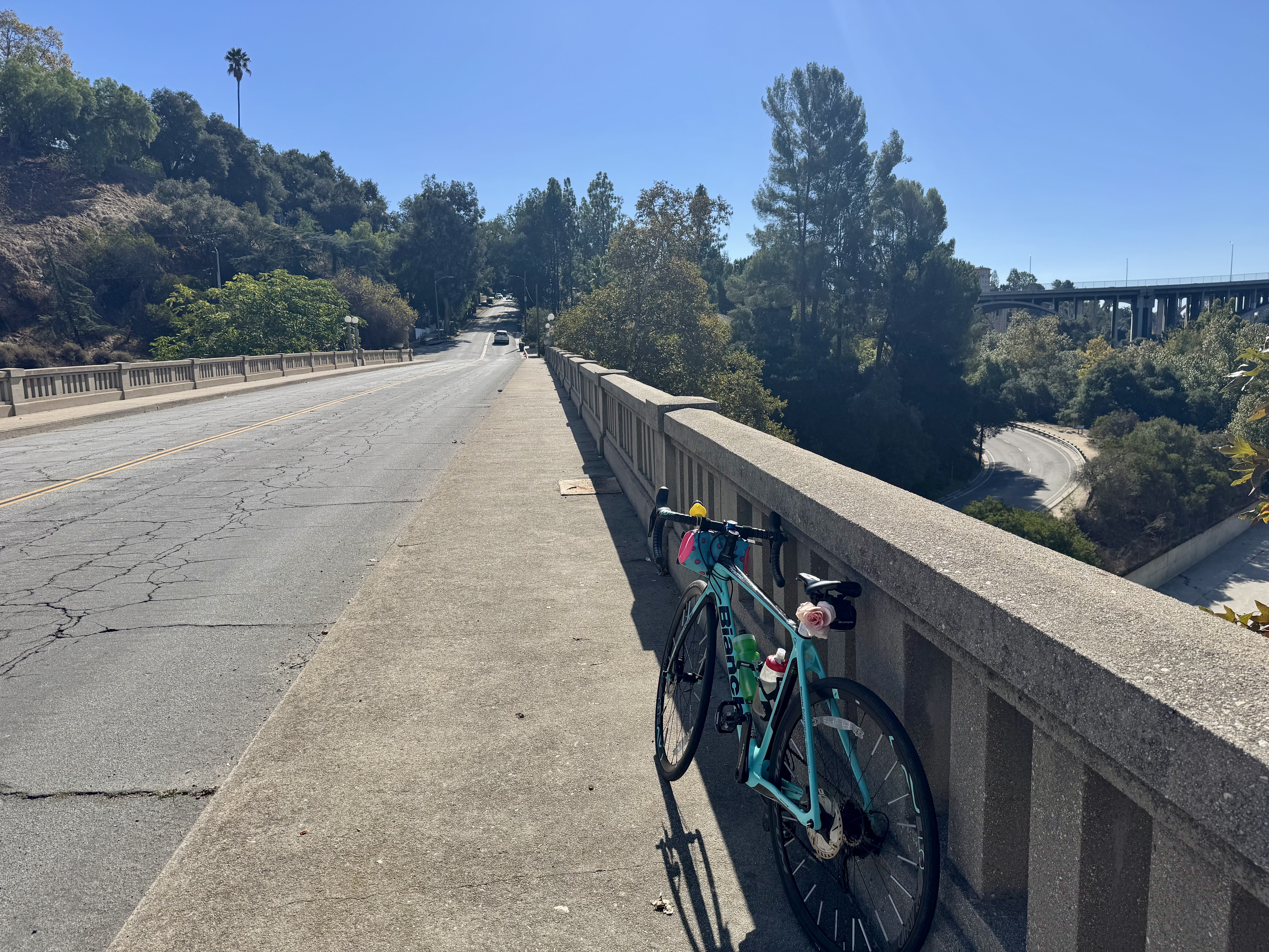 After a little more climbing, I enjoyed the descent down Linda Vista followed by rolling past the Rose Bowl, and then heading over one of the stately historic bridges over the Arroyo Seco. If you’ve never biked through Pasadena, add that to your bike-it list. Beautiful bridges, gorgeous homes, wide, tree-lined streets make for a real treat.