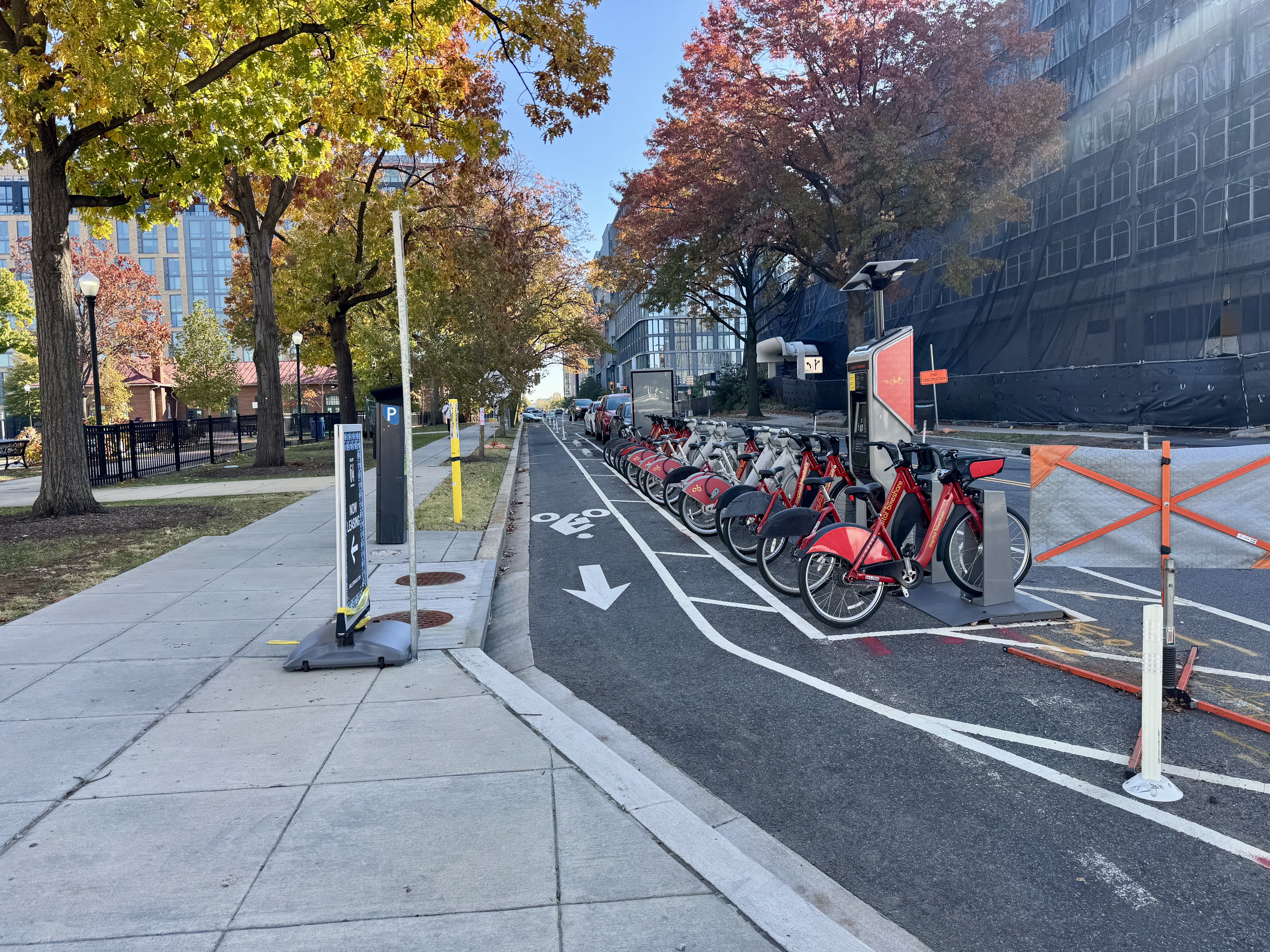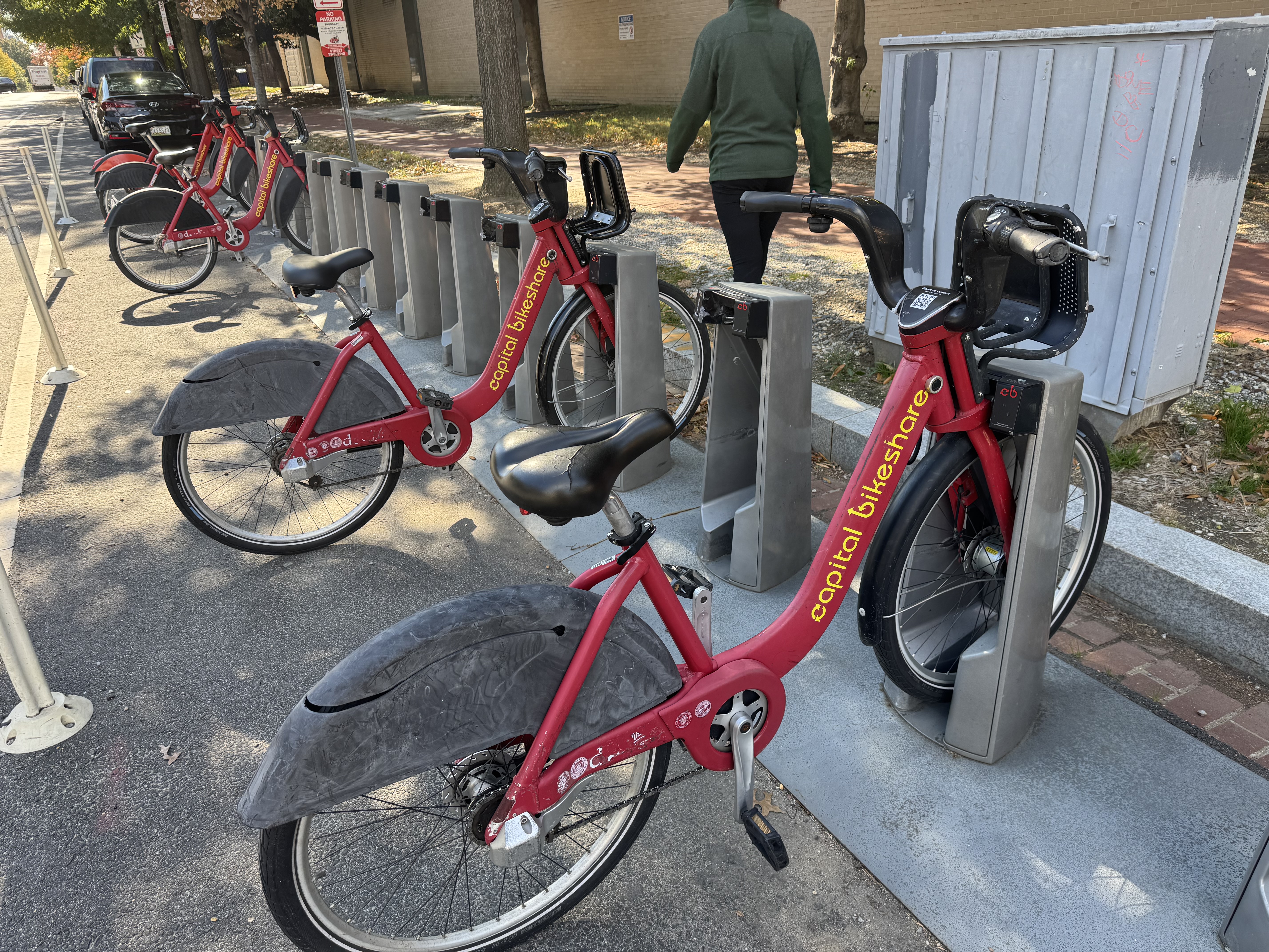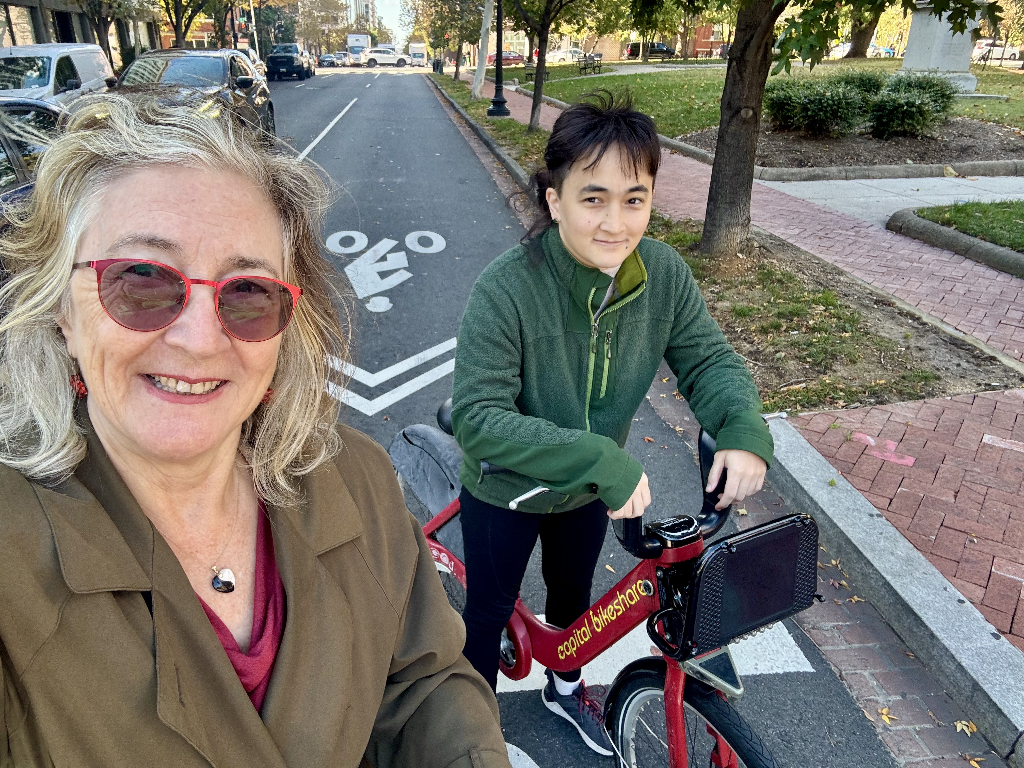 In order to meet the 2 mile minimum biking distance, I planned a route that would have Emilia and I swing by the White House and then loop back north toward Seylou. Unfortunately for my plan, we encountered a wee bit of difficulty getting set up with our bikes. First we had to walk a bit farther than planned to find a Capital Bikeshare docking station that had available bikes. Then, I had trouble figuring out how to check out two bikes at the same time. I had looked into it ahead of time and saw that it should be possible, but what I did not realize is that you have to check them out at the kiosk, not on the app, if you want to get two bikes. By the time I had sorted that all out and we were ready to ride, there wasn’t enough time and we needed to just roll straight on to Seylou.