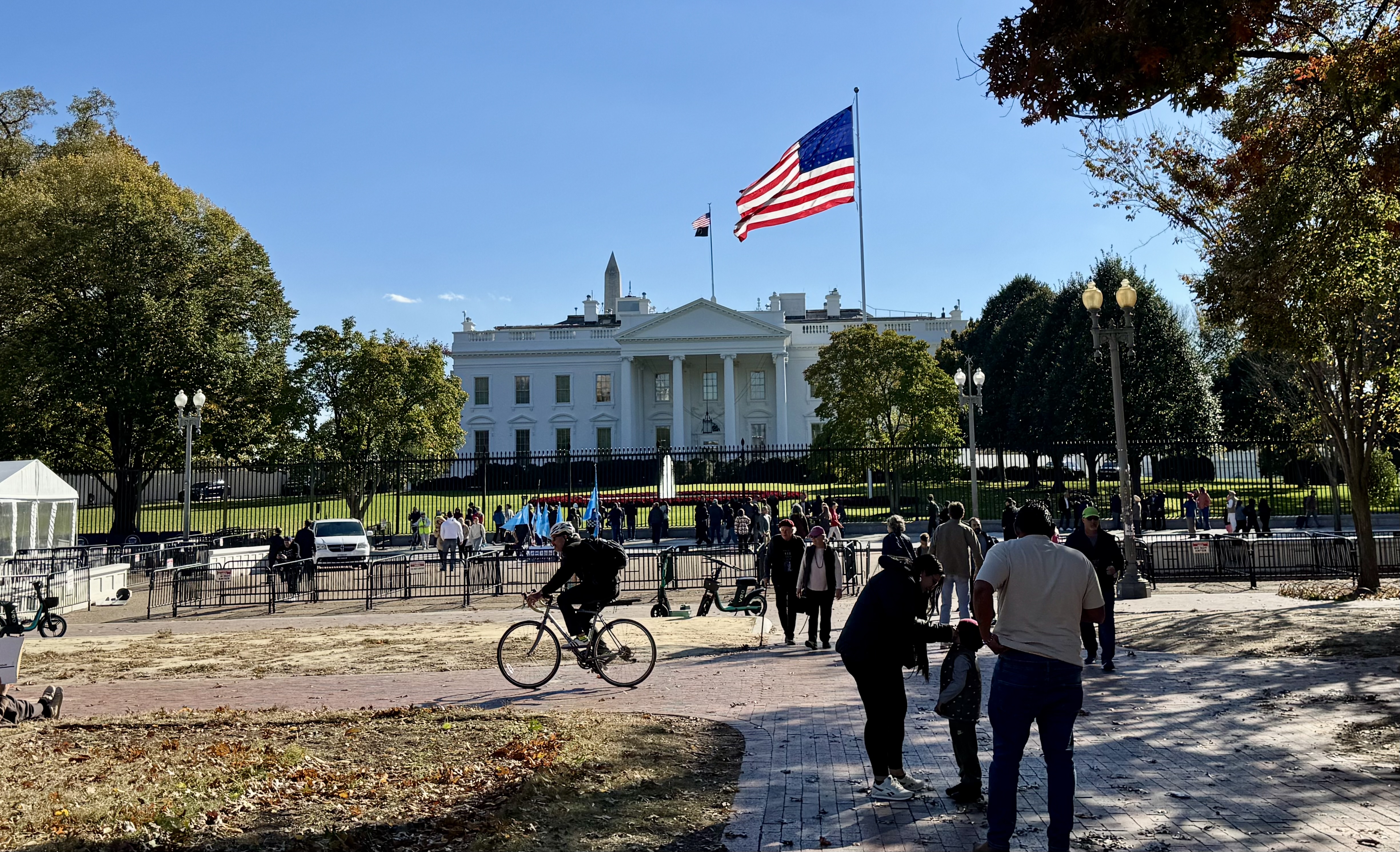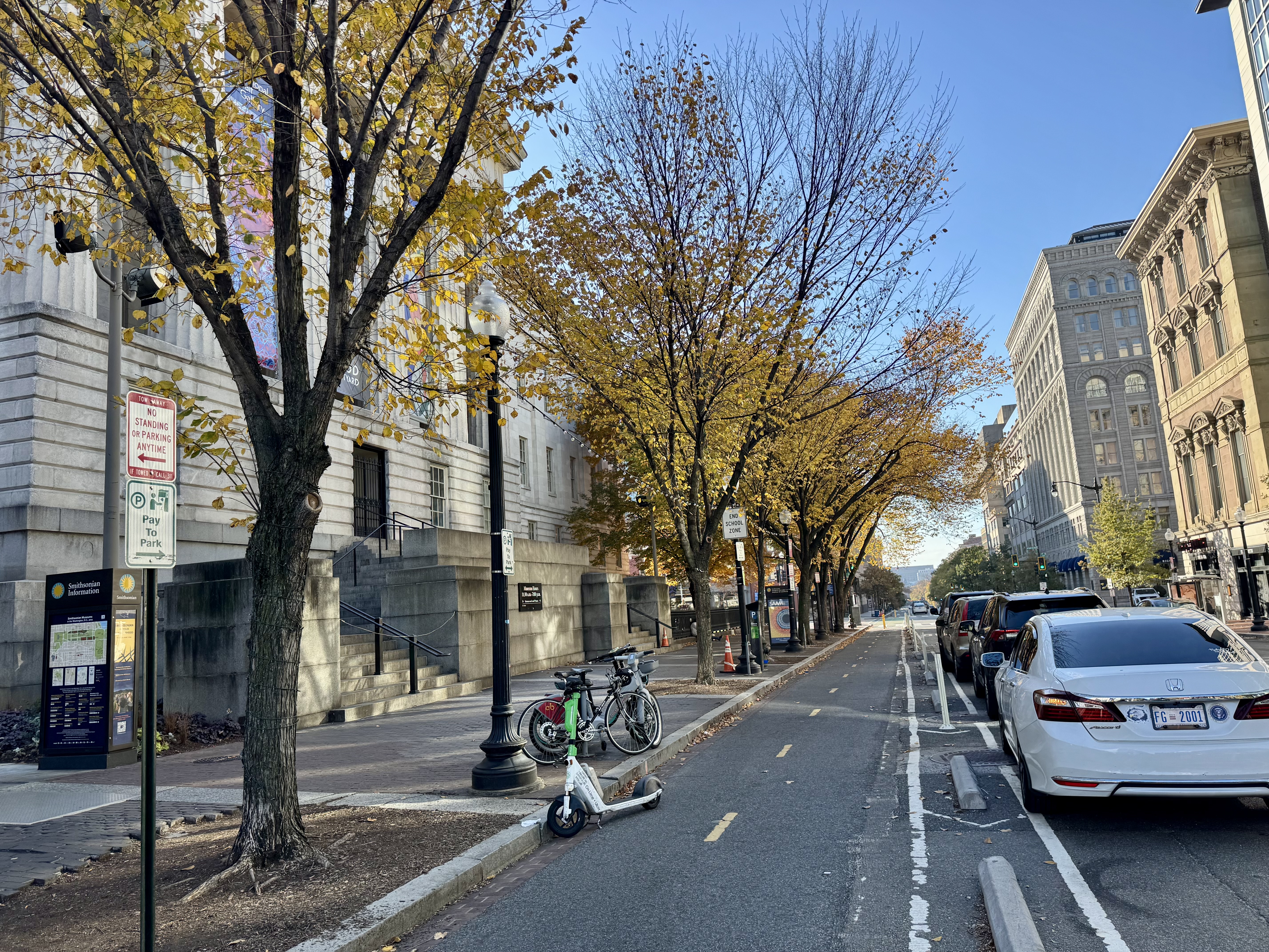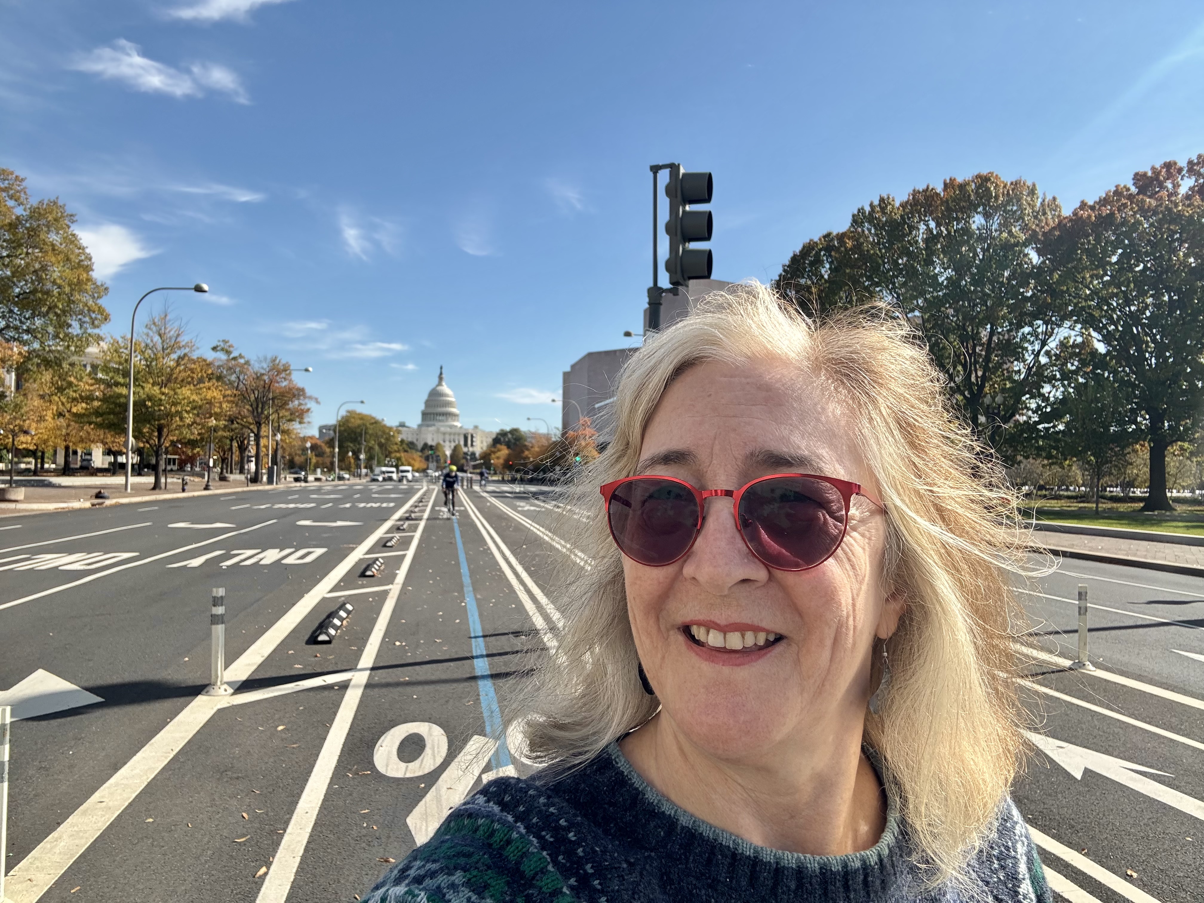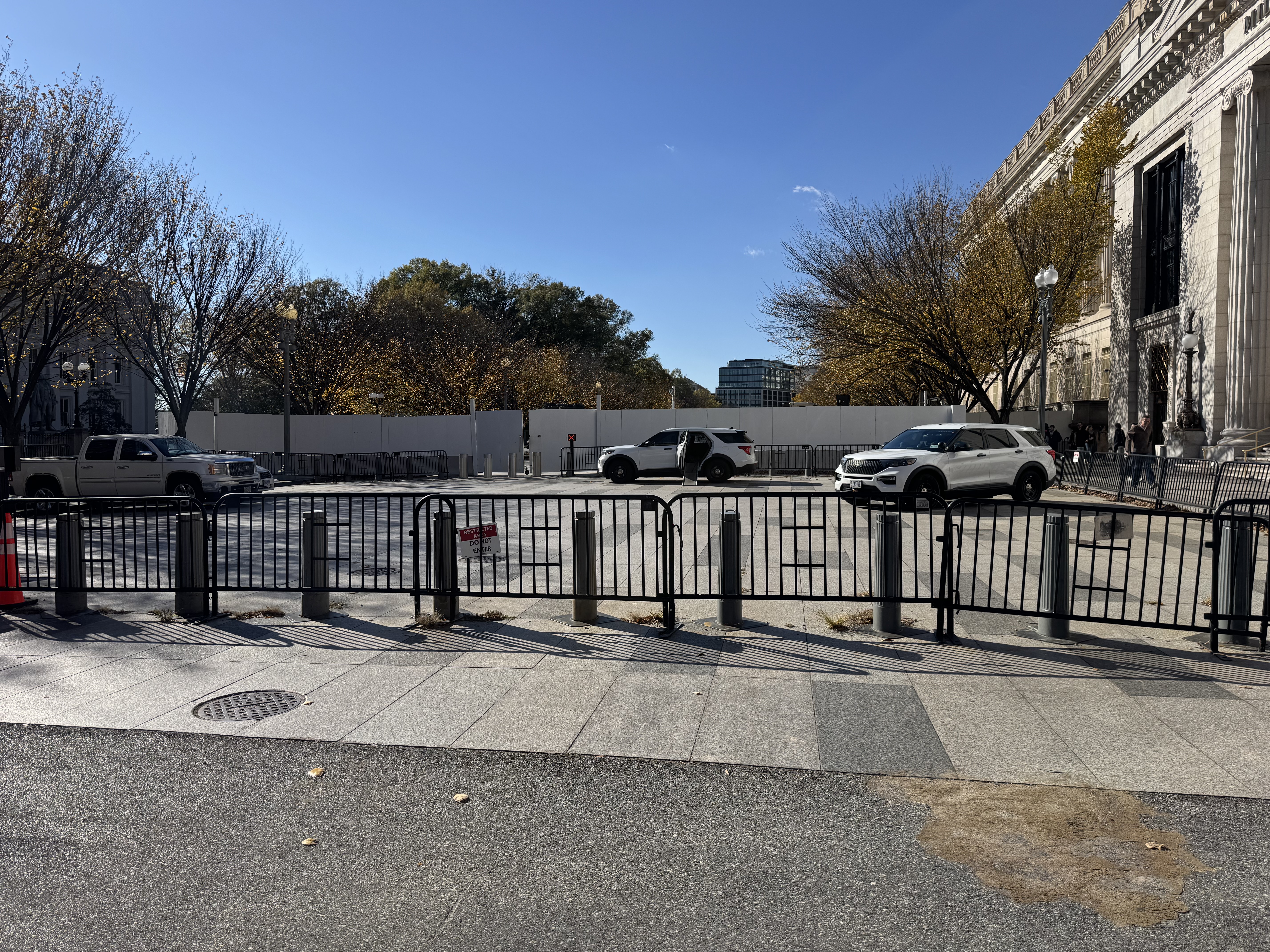Afterward, Emilia was ready to just walk the few blocks back to our hotel, while I was eager to complete my intended route and biking mileage. So we parted ways and I walked over to a different bike dock alone and found me a fresh ride. From there, I rode through Chinatown and then along the Mall toward the White House. This allowed me to snap selfies in front of key landmarks as part of a game set up by the meeting organizers to get us out and seeing the sights of our nation’s Capitol. I wanted to roll by the White House because a hot topic in the news at the time was the demolition of the East Wing, and I was curious to see what was going on. Of course, the entire east end of the White House grounds was walled off and nothing could be seen other than some cranes that were taller than the walls. I was also saddened to see that the access to the street that runs in front of the White House was completely blocked off from the east side, as was Lafayette Square Park.