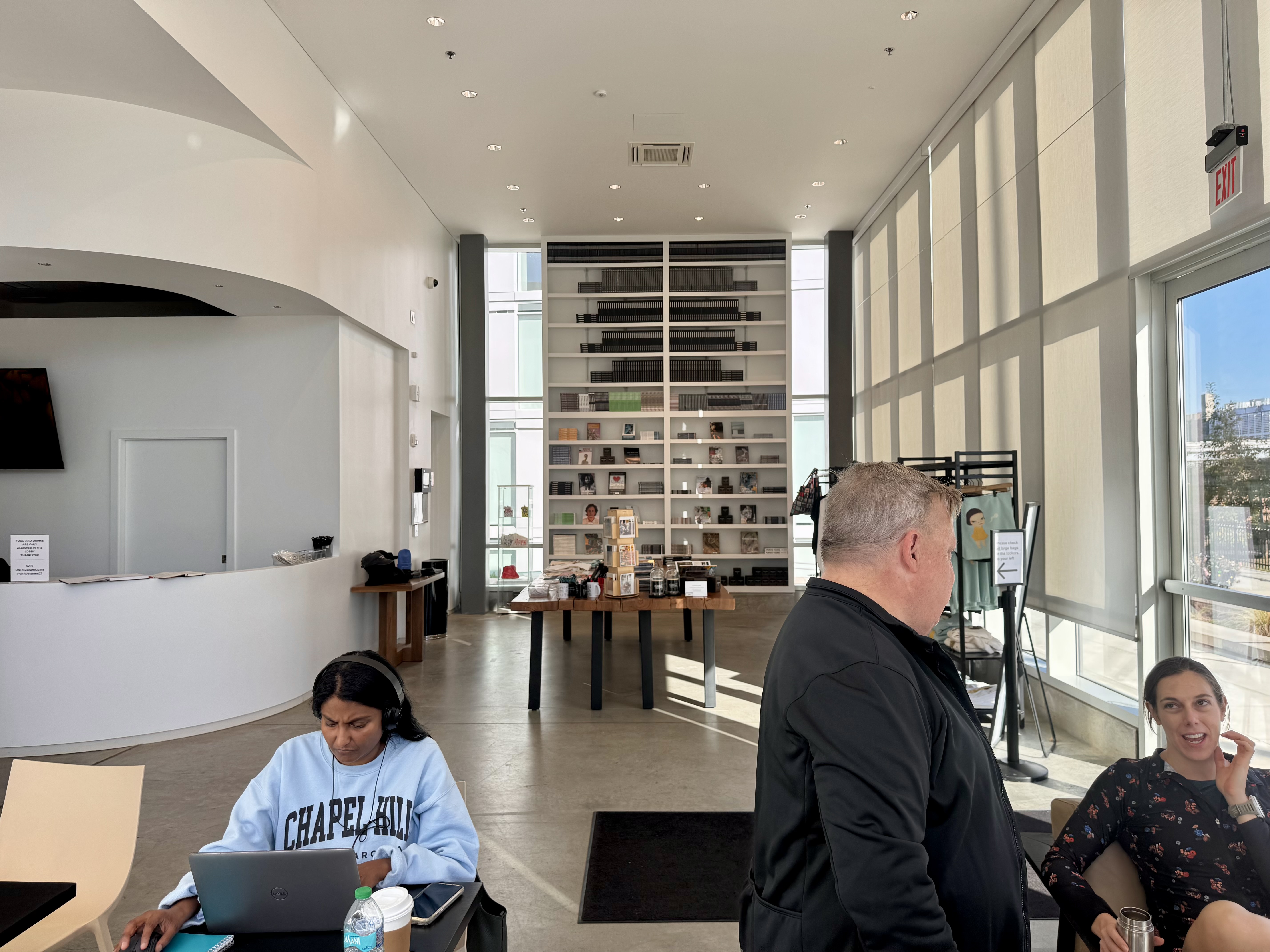 Beauty: super high-ceiling lobby of art museum & gift shop