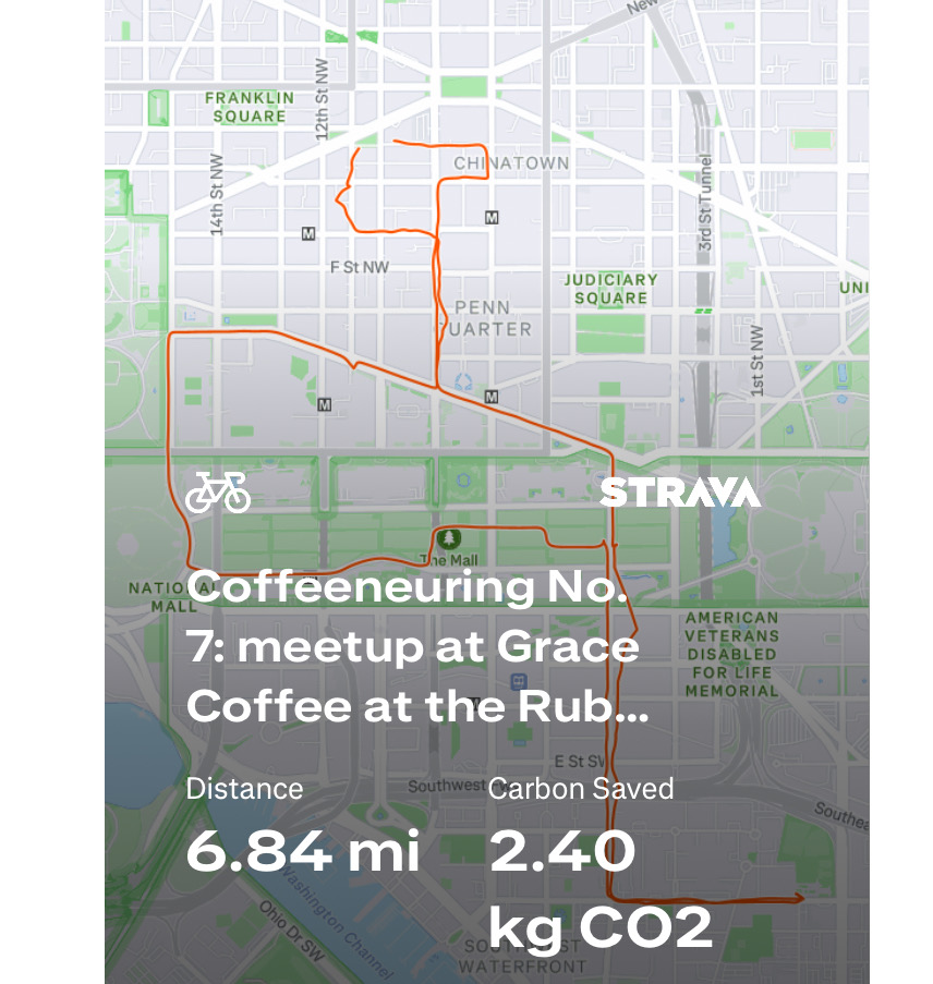This ride was a multi-stop errandonnee, as after getting my fill of coffee, treats, and gorgeous architecture, I needed to swing by the office where I pick up my business mail. Luckily, there is a docking station right across the street from the office as well, and it too was in service that day. Then, with mail in hand, I rode back to the station closest to home. Although my Strava record shows 11.42 miles, I must deduct the 1.2 miles of scootering plus a little walking for that stretch in the middle when I was not on a bike, so I’m calling it 10 miles of riding.