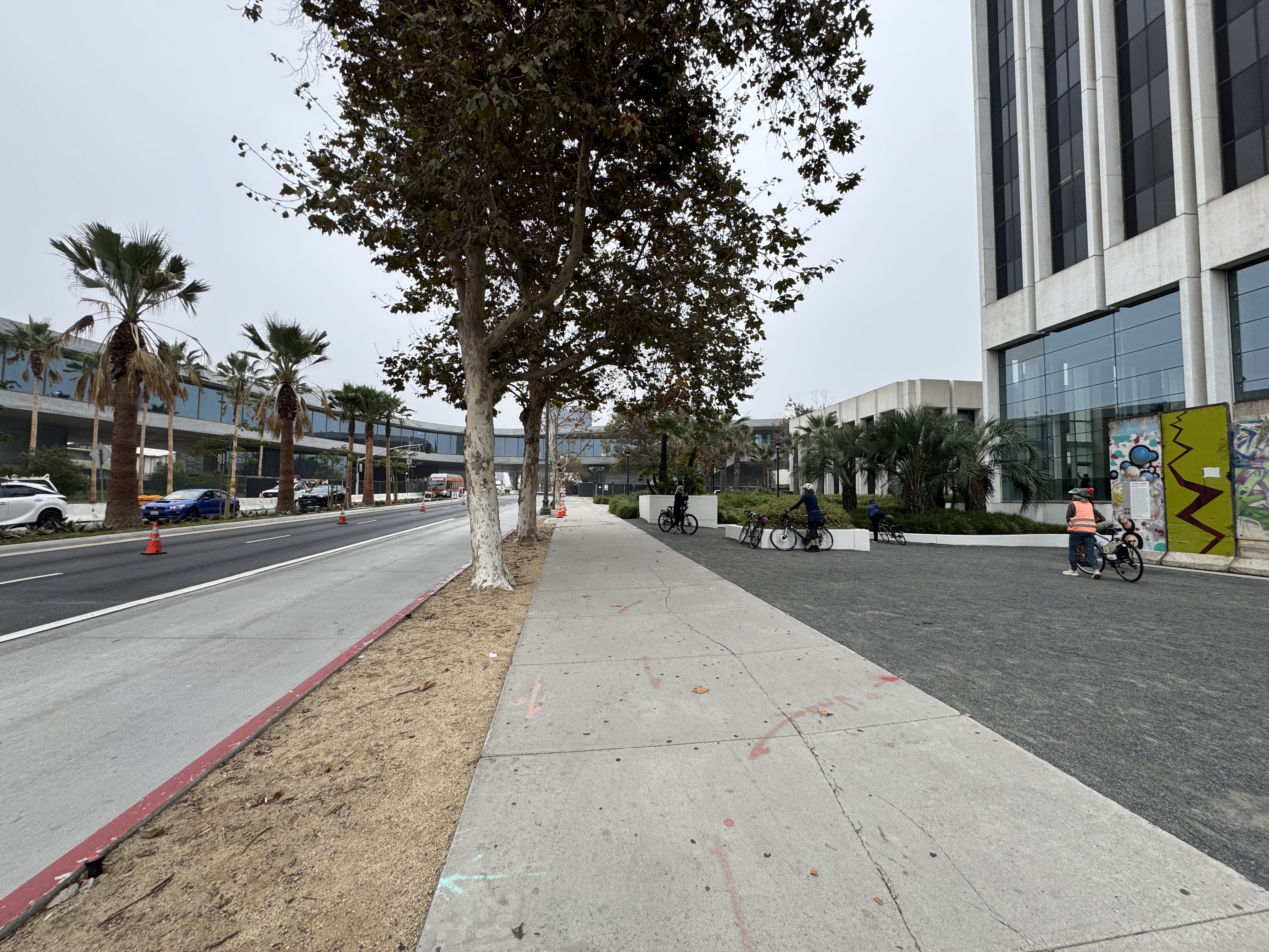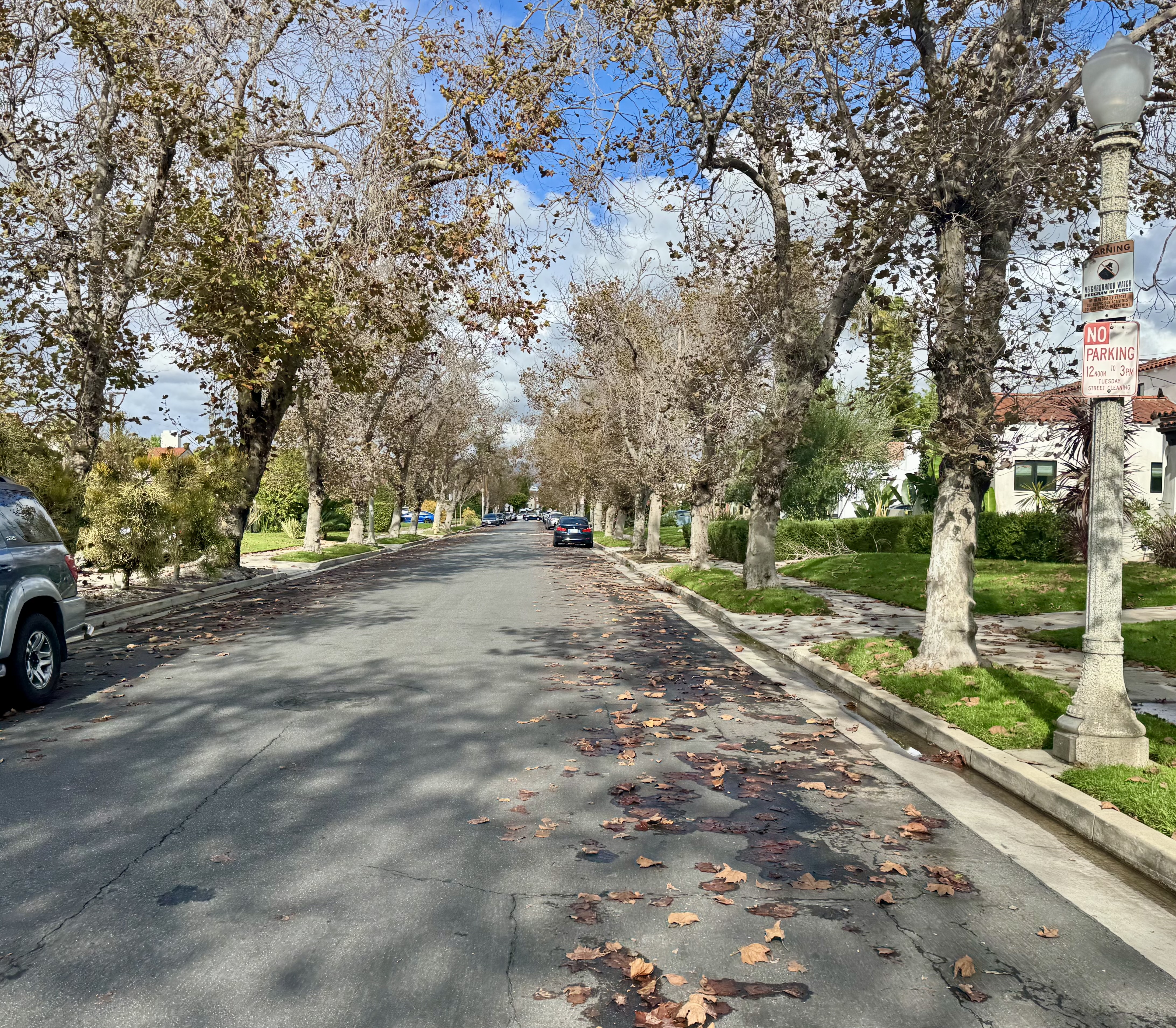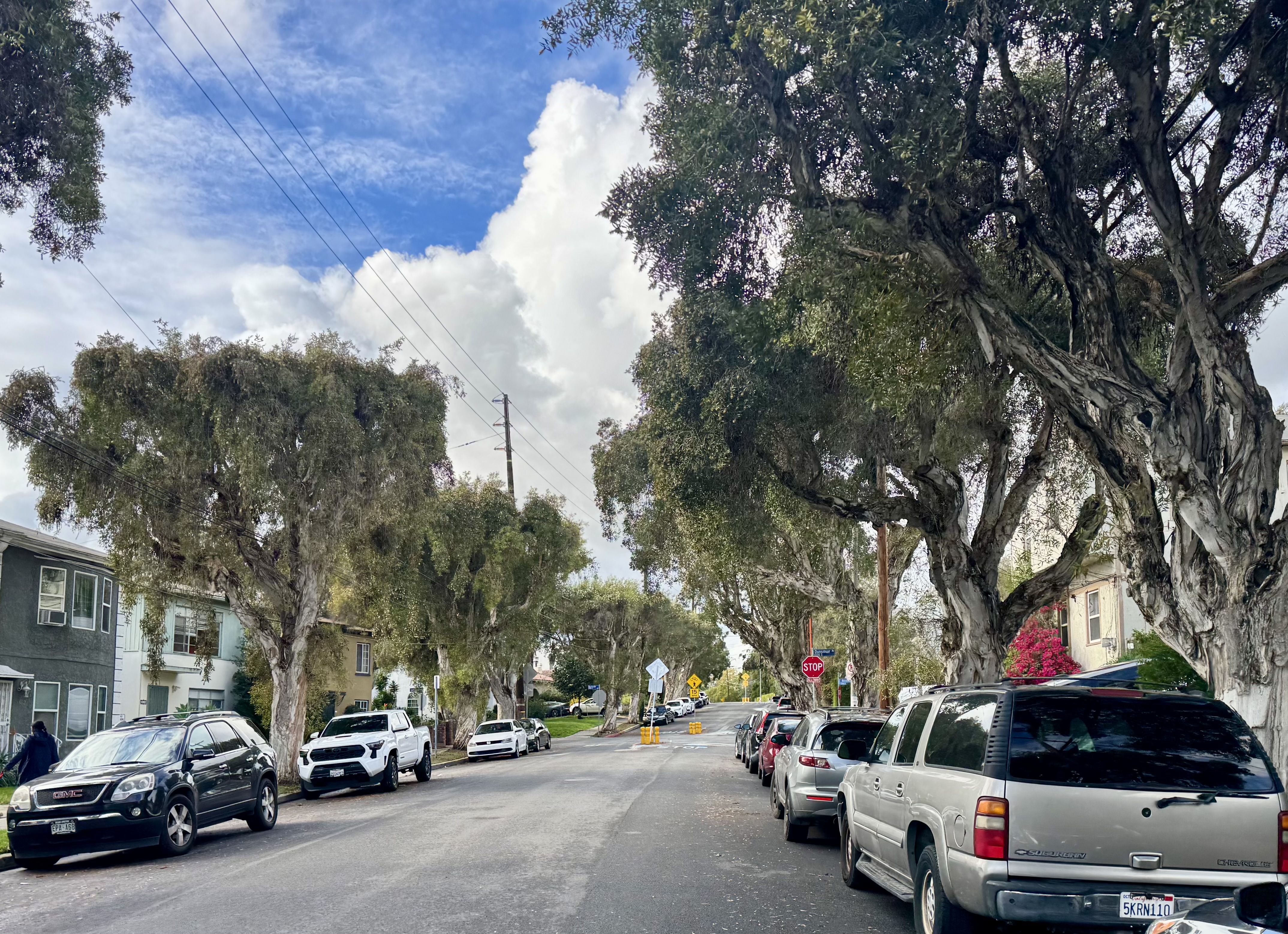 I looked at a map to consider the bike-friendly streets I could take, and settled on the 4th Ave bike lanes to the Venice Blvd bike lanes to get me to Cochran Ave and then take Packard Ave to Carmona. This was indeed the route of bike-friendliness + beauty, as the latter streets were pretty, tree-lined “slow streets”, meaning they had added features to slow down traffic and make drivers aware of pedestrians and cyclists.
