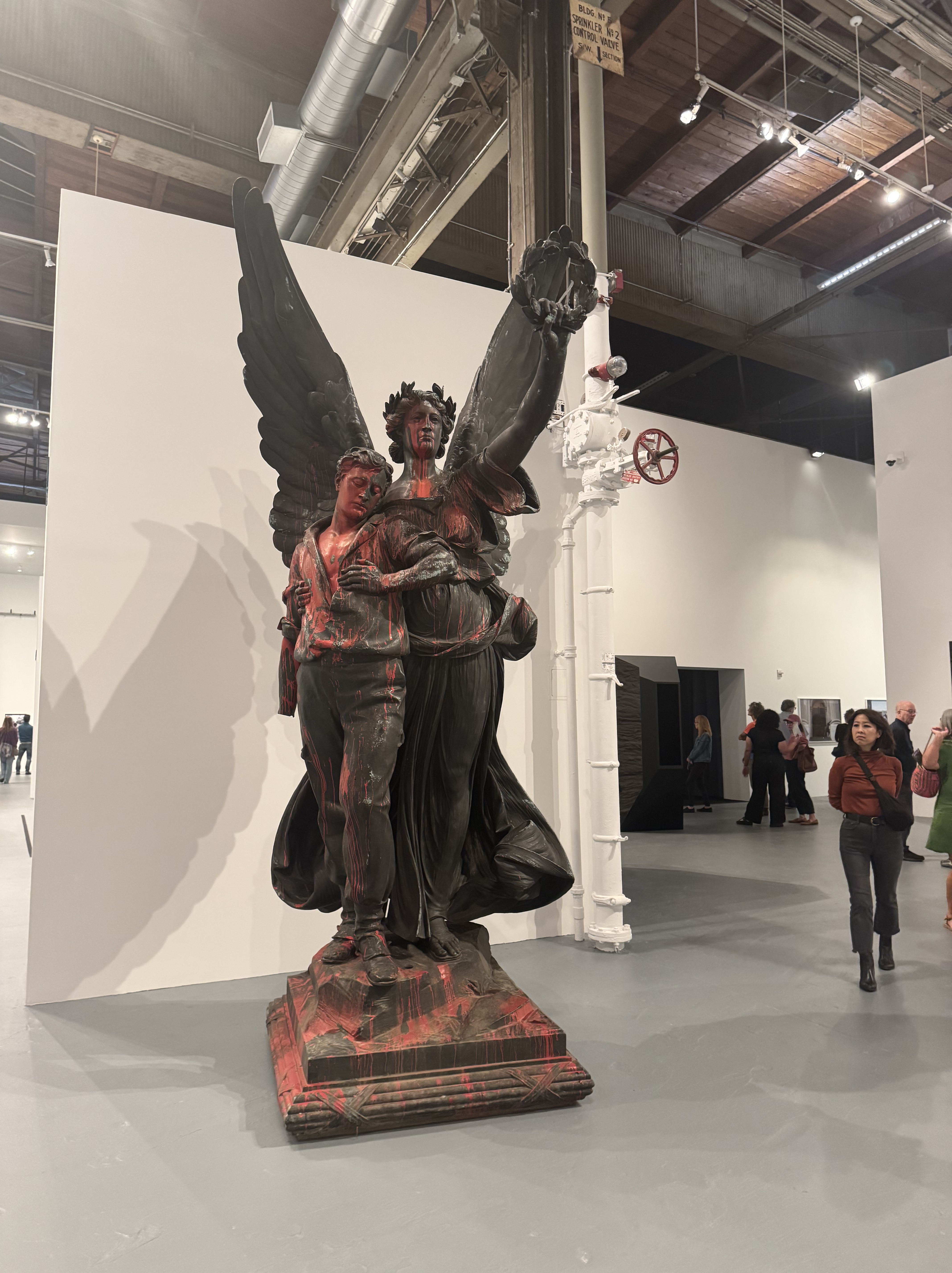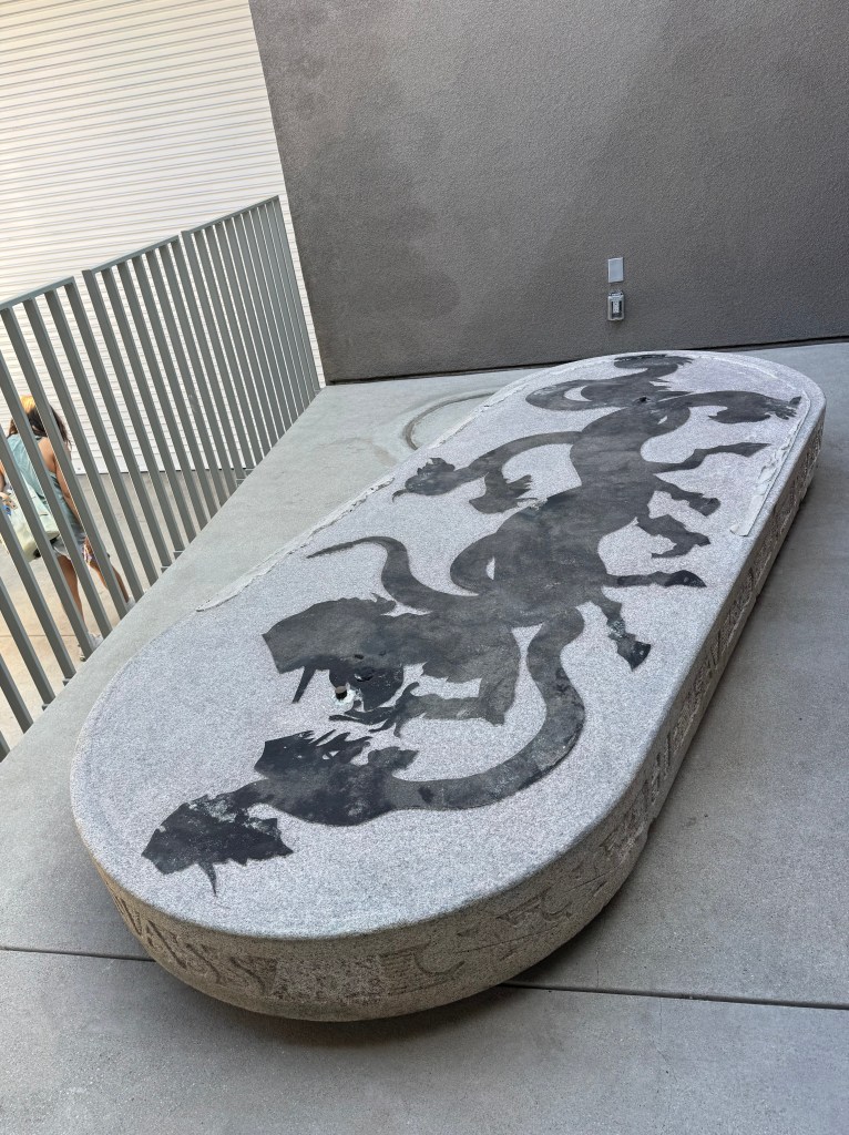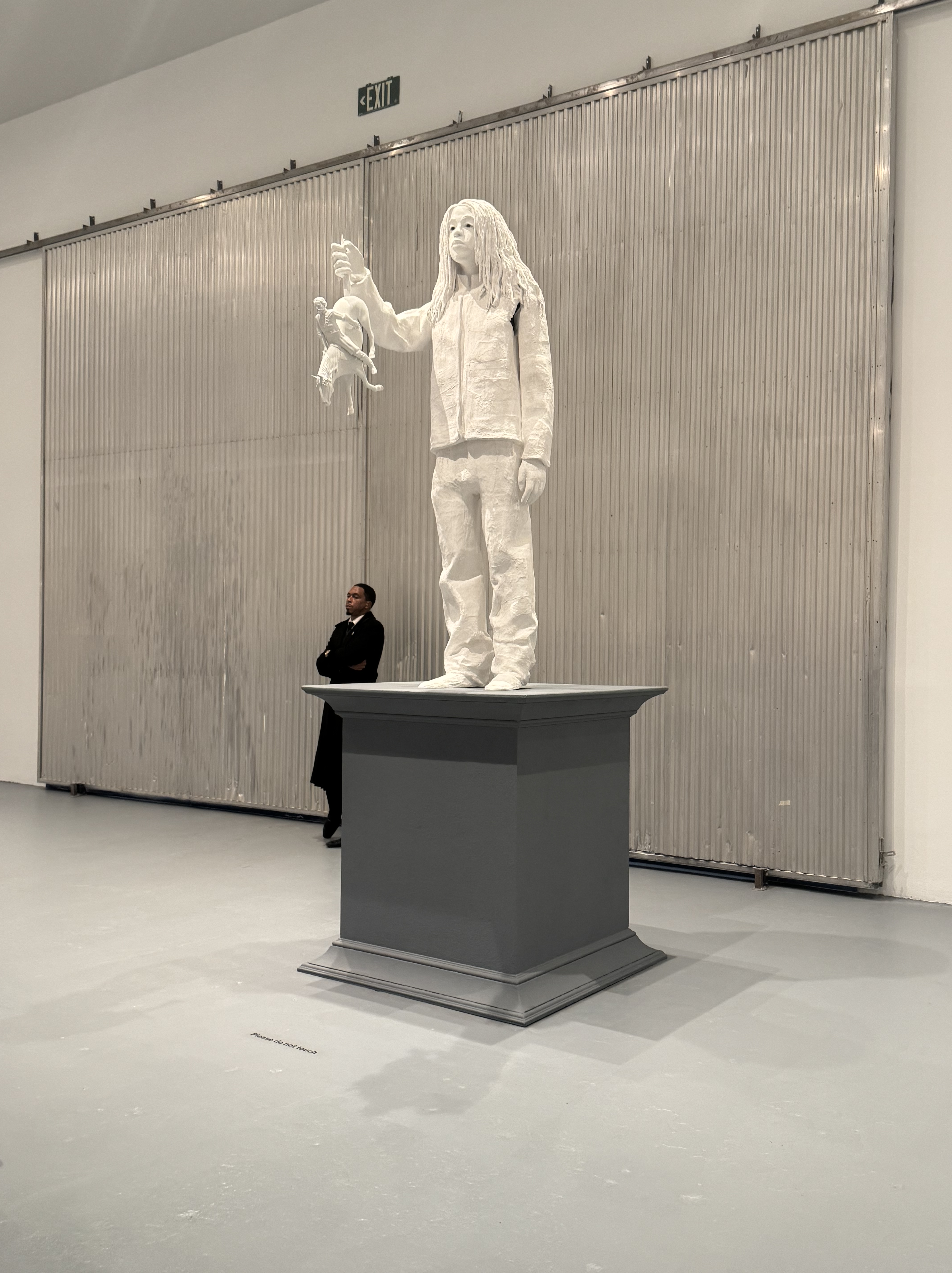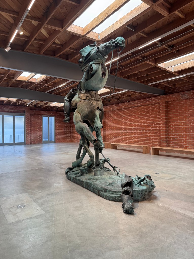 The following Friday was free day at the Museum of Contemporary Art (MOCA), and my friend Joni had alerted me that she had reserved a spot to see the new MONUMENTS exhibit showing at two locations, one of which is not far from where I live. So I reserved a spot to join her. The first stop was a smaller museum, The Brick, whose exhibit features the Charles Keck’s 1921 sculpture of Stonewall Jackson riding his mount Little Sorel. The piece is titled “Unmanned Drone” by Kara Walker, who took the statue apart and reimagined it in a rather gruesome spectacle. The large, powerful piece is appropriately given nearly the entire exhibit area. Just a few related pieces are on display in an adjacent patio area.