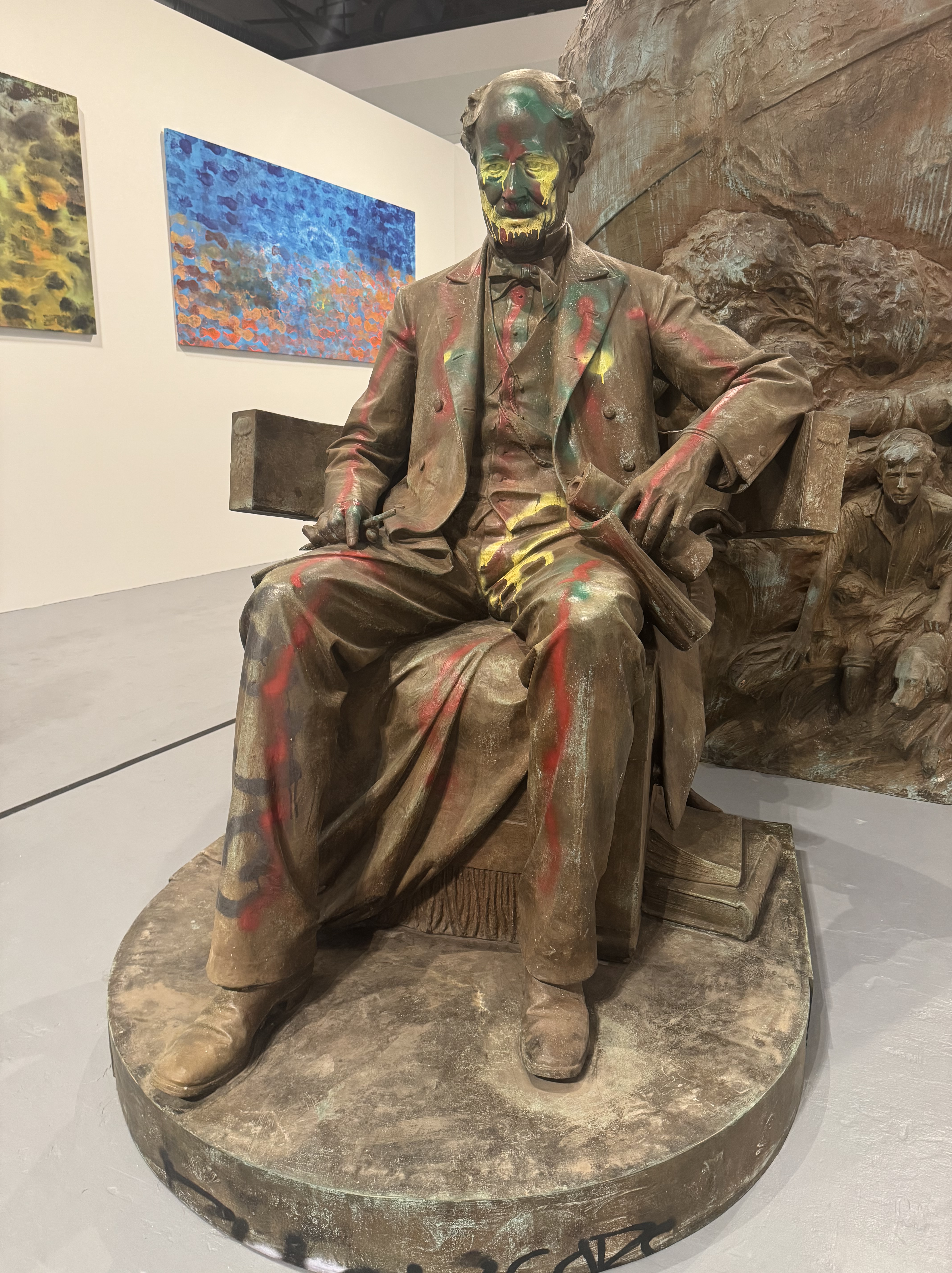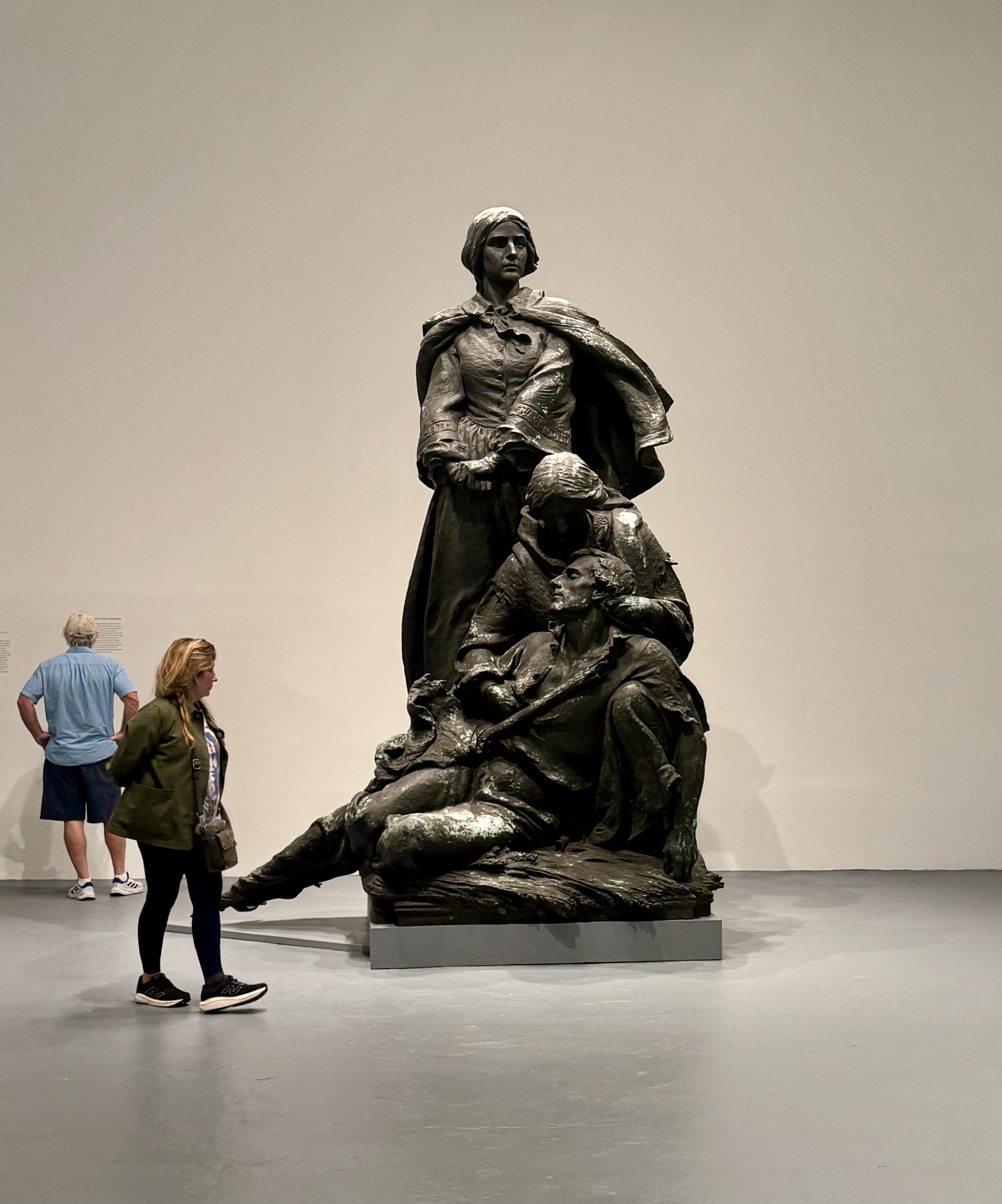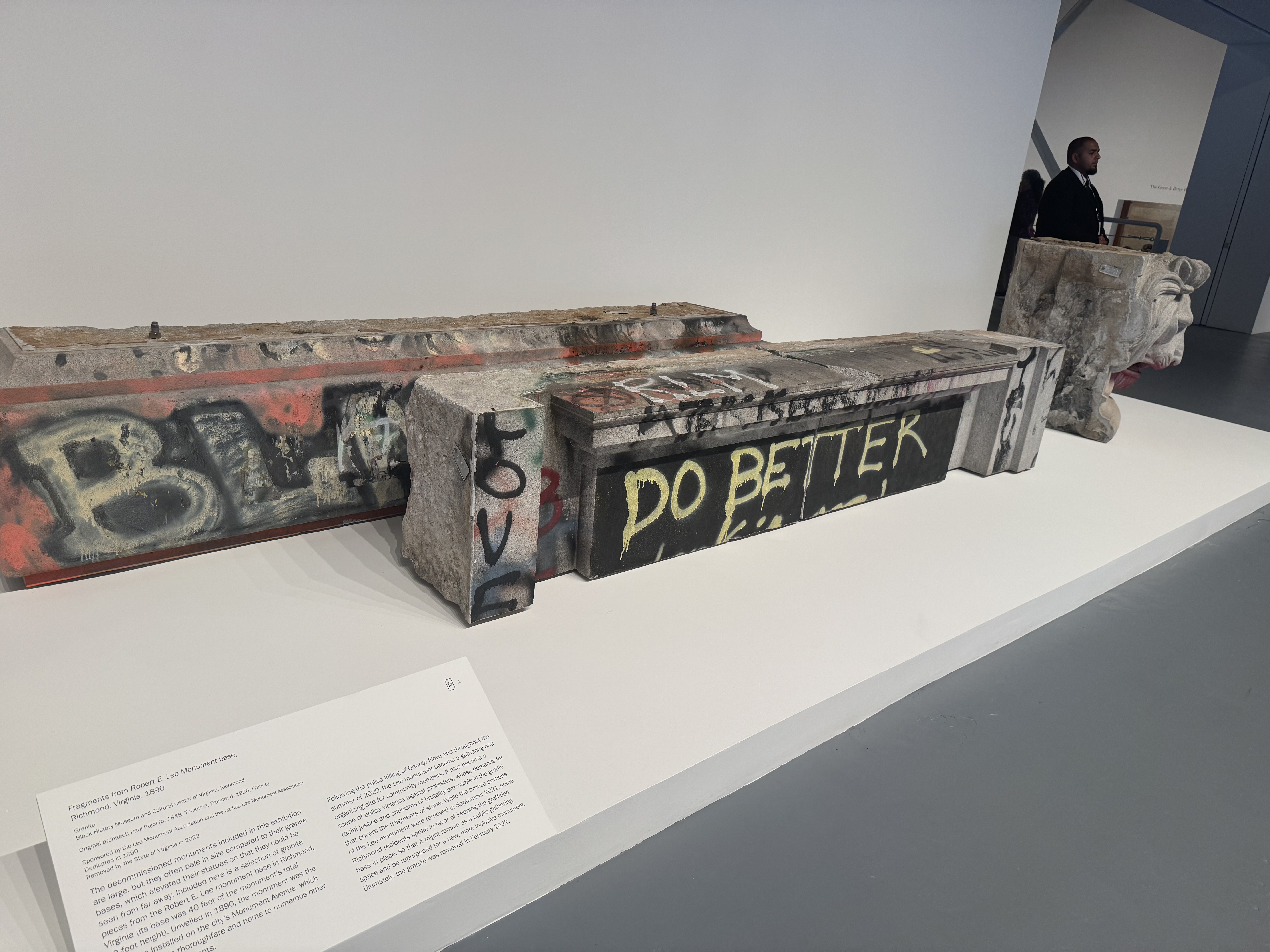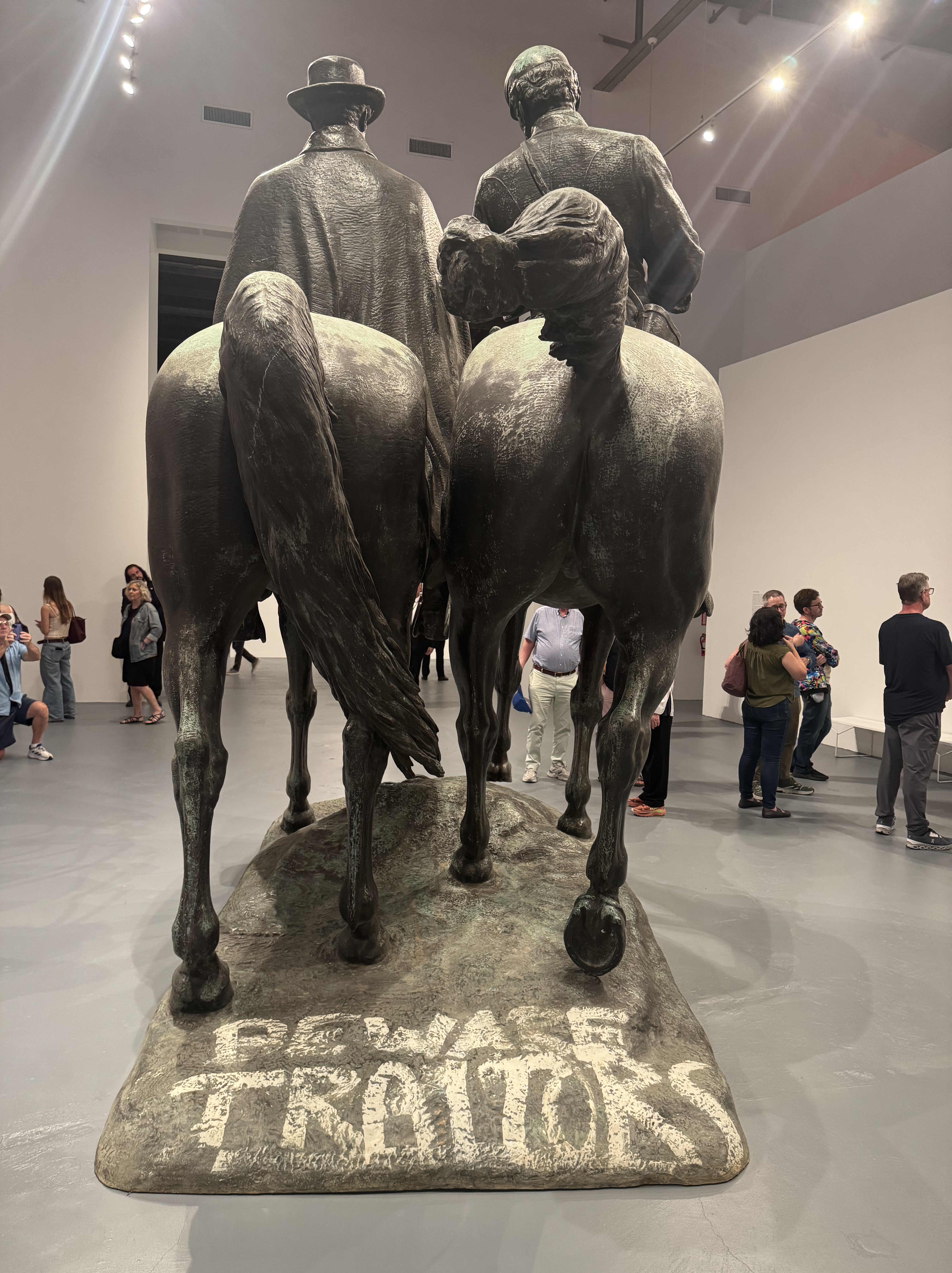 The exhibit was extraordinary. To see these monuments in person and inside a museum with other people milling about makes the huge size and power of these pieces apparent. It was astonishing to read the stories of how and why these monuments were brought into existence and the important message of taking them down, re-imagining them, and re-writing the narrative. Rather than attempt to characterize the exhibit, I recommend the comments I found here from a UVA professor and historian.