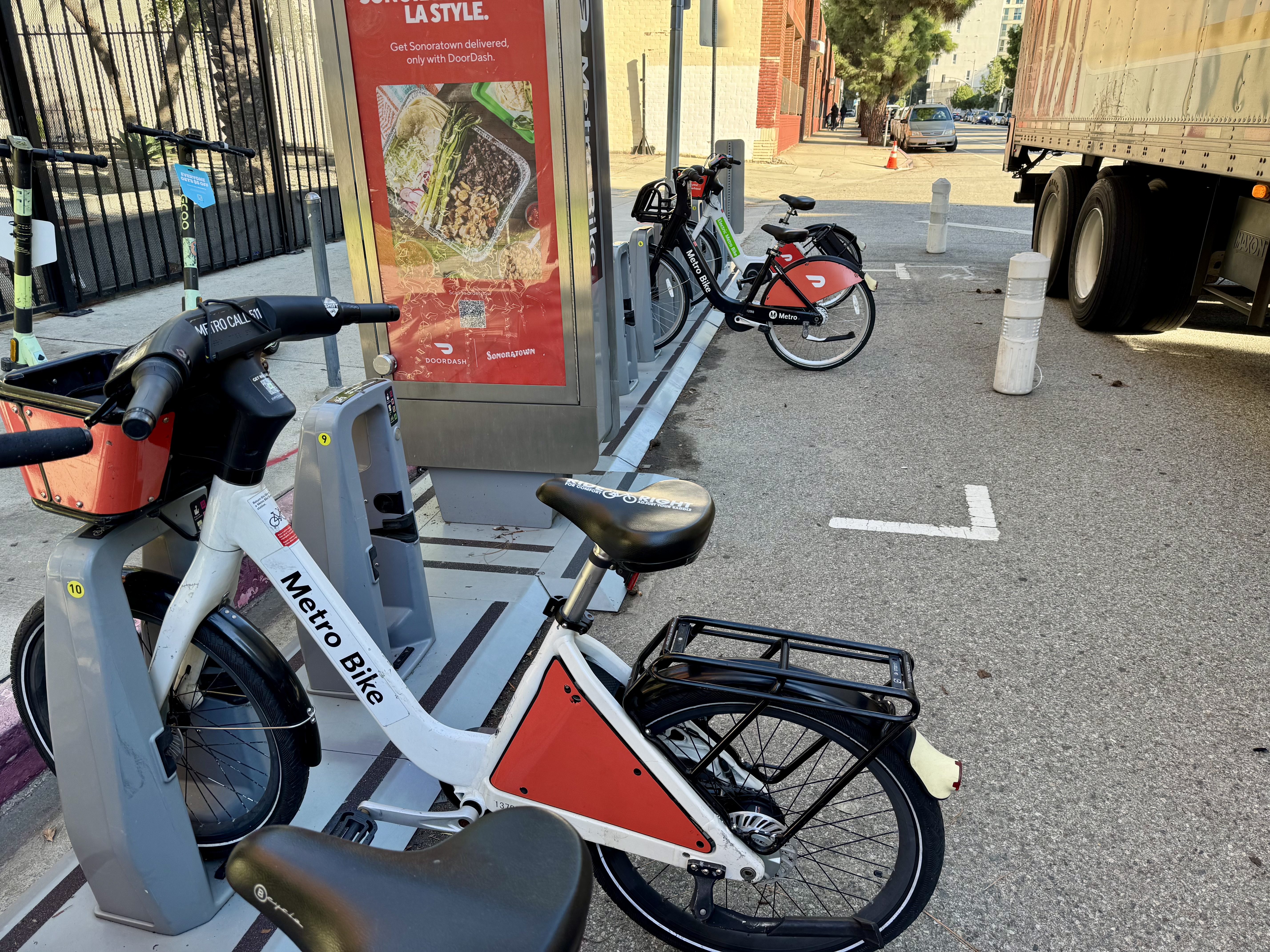 One thing I don’t like about biking to downtown L.A. is having to identify a secure place to lock up my bike. I sometimes solve this problem by using bike share. Turns out there is a bike share dock just across the street from the Quest lab where I had made my appointment, and there is also a bike share dock just across the street from the CalEdison building. Problem solved!