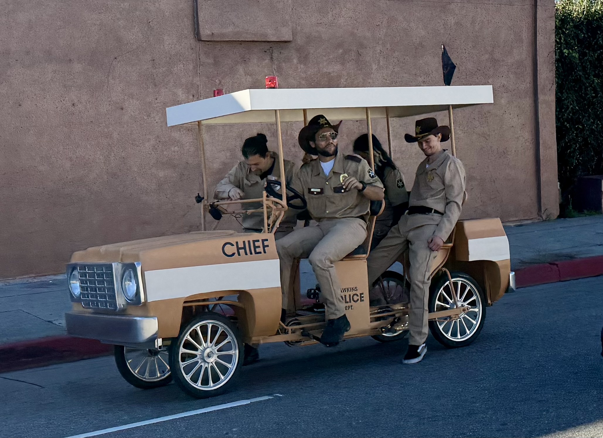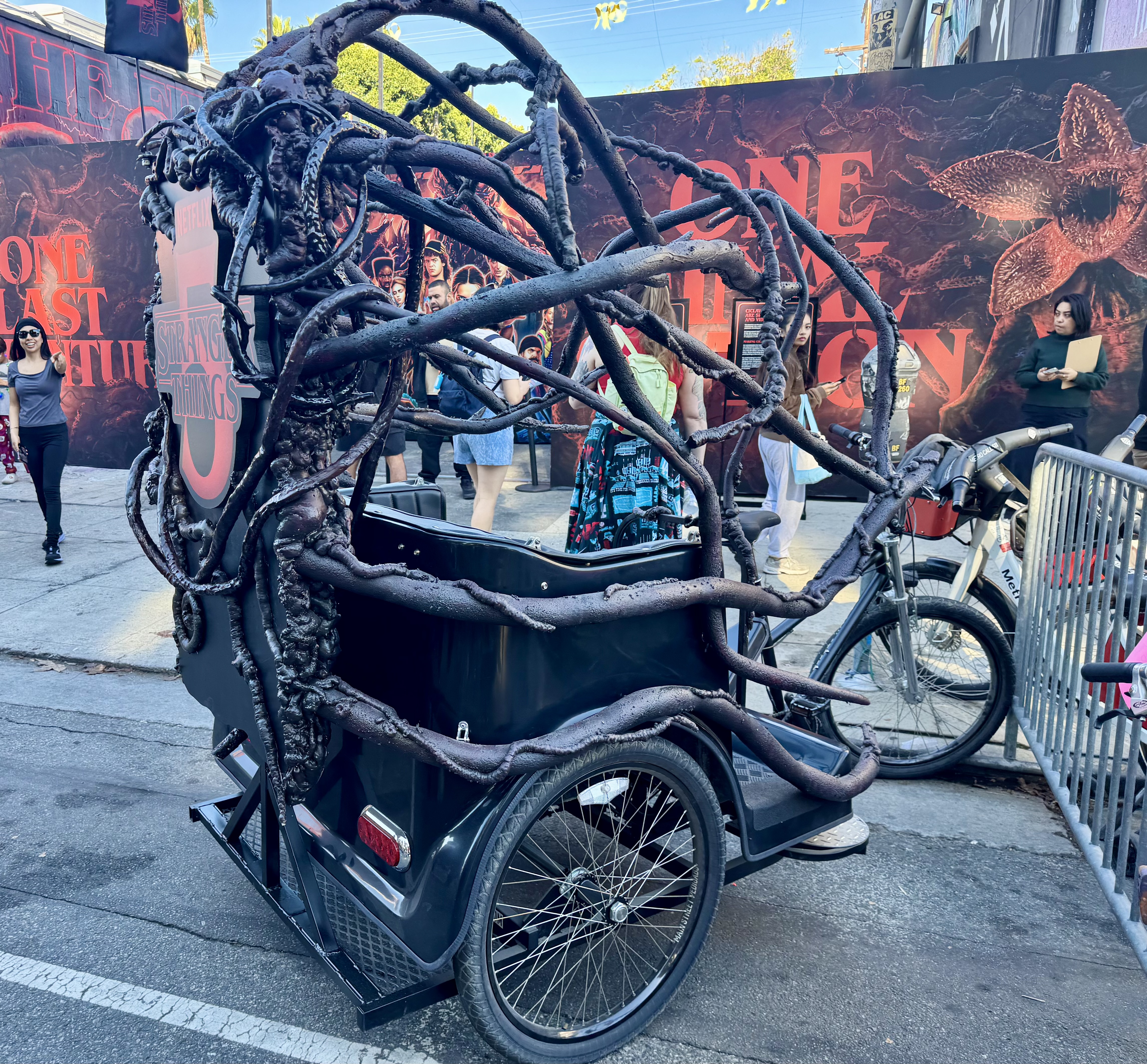 The Sunday of opening weekend of Coffeeneuring season included a CicLAvia (open streets) event. It seemed fitting then that the closing weekend also featured a CicLAvia event, this one along Melrose Ave in Hollywood. The event had originally been schedule for December 7th, but it got moved up to November 23rd to align with the release of the final season of Stranger Things. Why? You may be wondering. Well, funding for these popular open streets events has been threatened, and apparently Metro found a sponsor in Netflix. I have to say, Netflix played it up quite well. There were many characters from Stranger Things all along the route, from El in her surgical gown with black stuff oozing out of a nostril to the cheerleaders of Hawkins High School, and even creatures from the upside down.