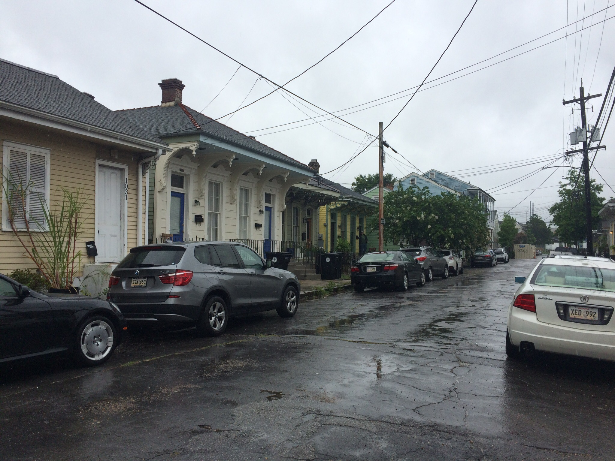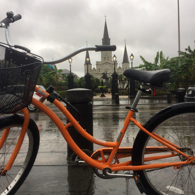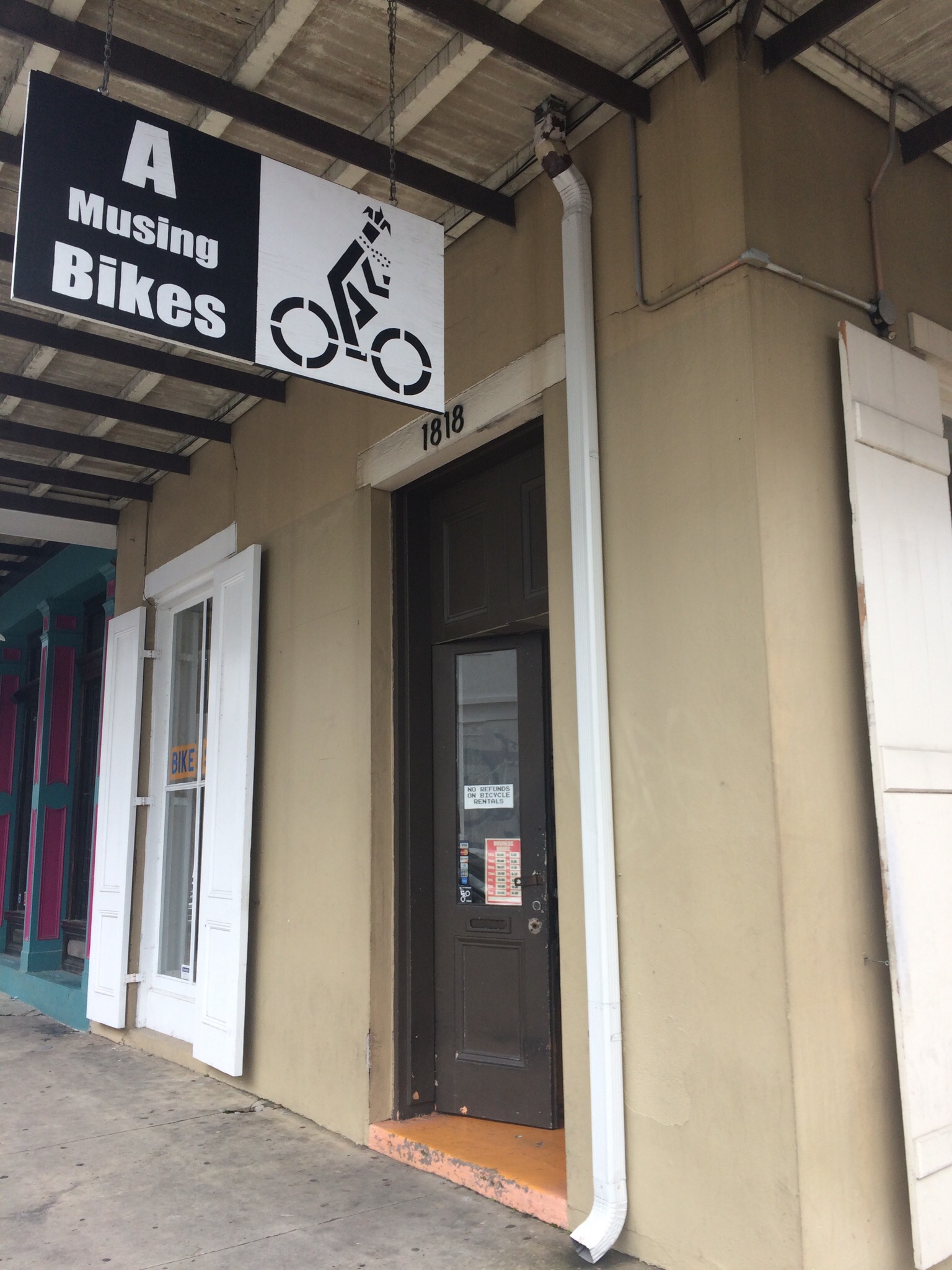 my way, able to bike with all my things either on my back or in the front basket. I stopped for breakfast at EnVie Espresso Bar and Cafe in the French Quarter, passing more potholes on the way. I made it a hearty breakfast to last me until the event closing at 2:30 p.m. Note the interesting clientele at this establishment.