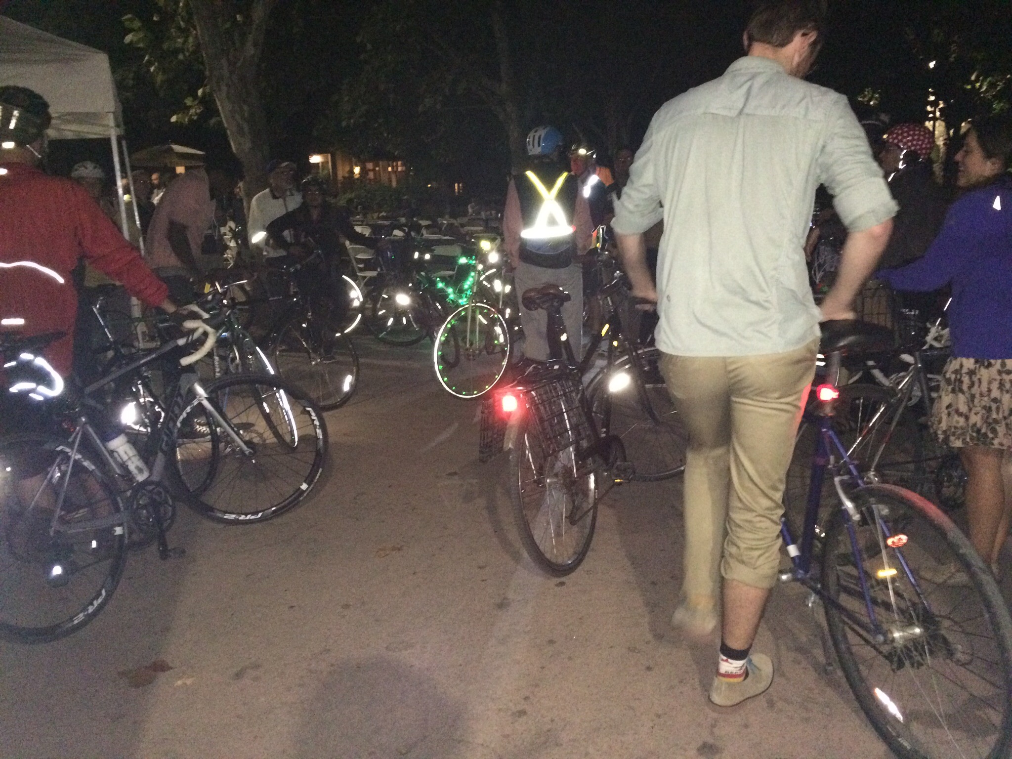 We disembarked at the Grosvenor Station, and from there, rode our bikes 6 miles to Potomac, where our friends live. My bike felt a little sluggish, but I wasn’t sure if it was because I wasn’t that accustomed to my new GravelKing tires (although I did ride on them for the last few training rides), or because of the weight of my pannier and handlebar bag, or because my tires weren’t properly inflated. Or maybe I was just feeling slow in the way I often do when I can’t keep up with El Cochinito. We figured we’d borrow a floor pump from our friend to make sure the tires were adequately inflated, but then the floor pump couldn’t be found. Oh, well. We just pumped them up again as best we could with the mini pump.