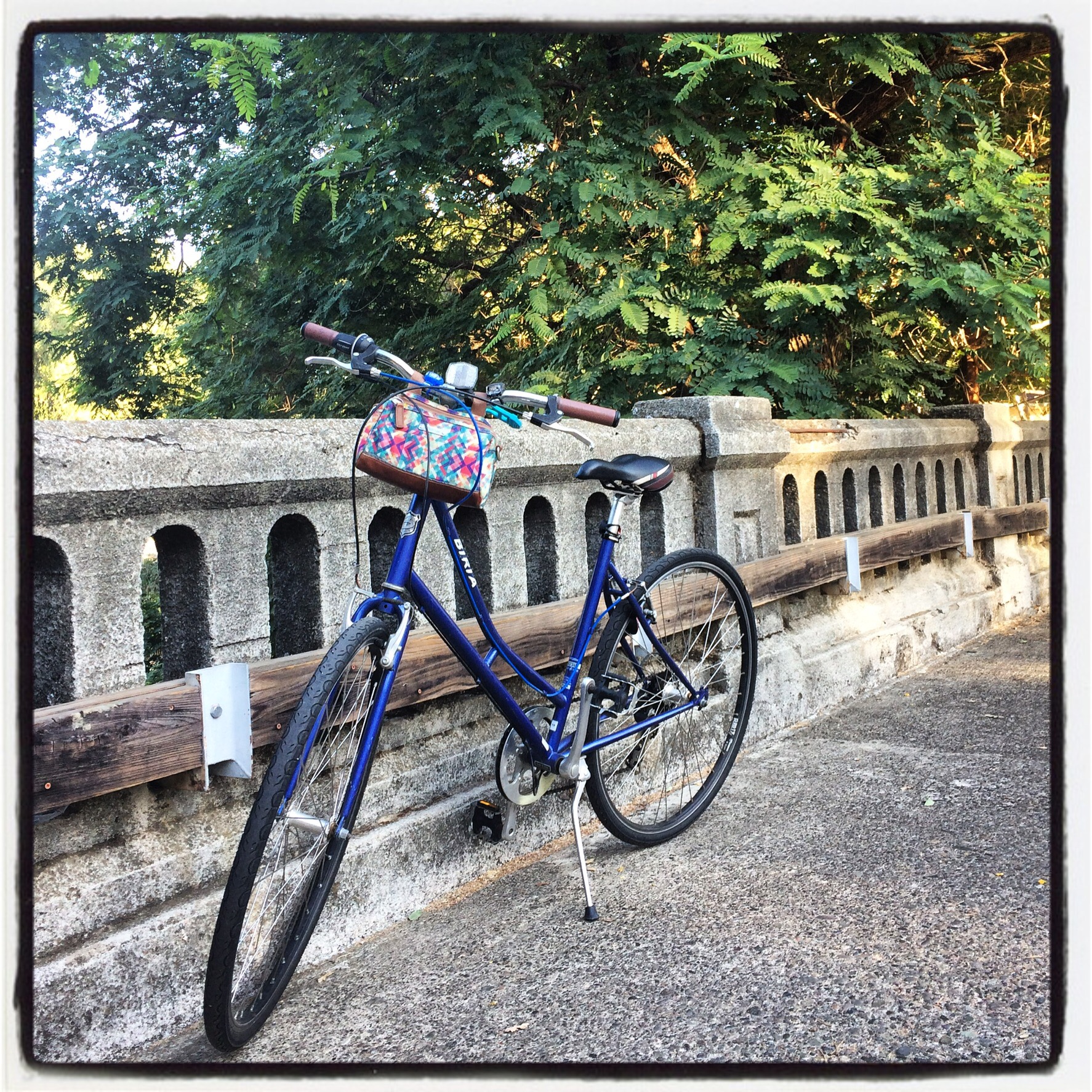 We continued northeast, delighted to hop onto the D&L Towpath / Delaware Canal Trail, which was beautiful. I was downright giddy. The earth had a reddish hue, the canal was lined with wildflowers, and the trail was enveloped by lush greenery. I noticed my new wider gravel tires felt a little mushy on this trail of crushed stone and dirt. Was that normal for this type of tire, or did I have a flat? I stopped to check, and sure enough, I had my first flat. The tire wasn’t completely flat, so I tried to see if I could pump more air back in, and keep pumping to the max, and see how much farther that would get me. I suppose I was hoping to make it to the end of the trail and find a bike shop to help me get it right. Alas, after stopping to pump more air into it a few times, I accepted that we would just have to fix the tire right there along the trail. El Cochinito did the dirty work for me, and we continued on our way. We were planning to turn right from the trail at a road that would take us over the Lower Trenton Bridge, but when we got to it, there was just a very steep staircase up to the street, and no way to continue on the trail. Our first google maps fail of the trip. We backtracked a short way to a parking lot we’d seen for a motel, and did a little wandering. Another cyclist helped us find our way to the bridge, and that brought us to an exciting moment: crossing the Delaware! We later realized that Washington’s army had crossed the Delaware much farther north, and then approached Trenton taking a longer journey southward from there. Nevertheless, after an awkward realization that we had to cross over to a pedestrian access on the far side of the bridge, we managed to complete our crossing of the Delaware, heading in to Trenton, where we stopped at the Battle Monument, and I learned a thing or two about the significance of the Battle of Trenton in the Revolutionary War. (You learn some things when your spouse is a history buff, whose graduate studies focused on the American Revolution.)