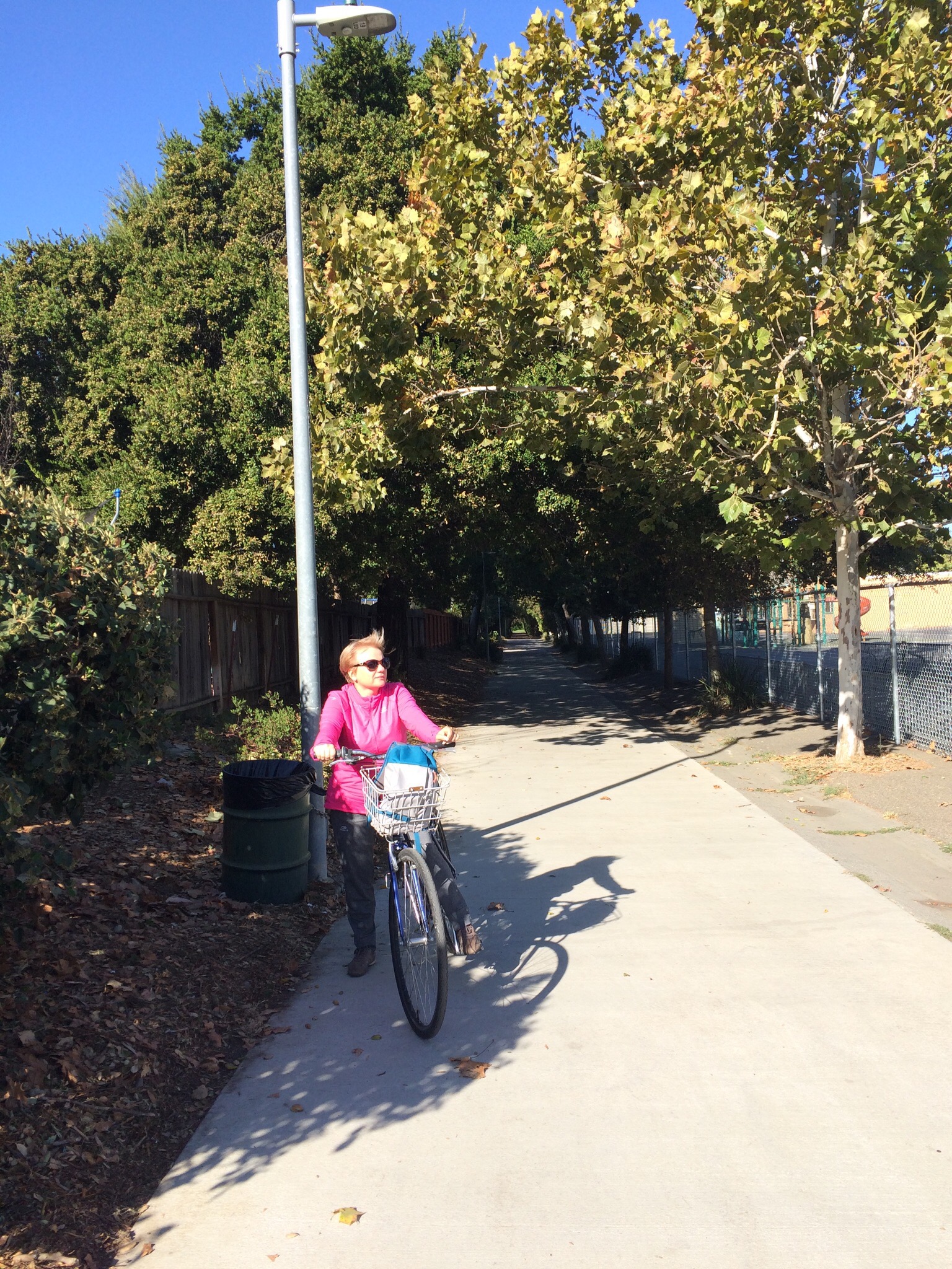 We reached a slight leveling off point and took a rest at the entrance to someone’s driveway. Sweat came gushing down my face. It took me awhile to catch my breath and mop up the sweat. We guzzled some water, slurped energy gels, and collected our strength to finish off the hill. The rest of the climb wasn’t quite as hard, and once I realized I’d made it to the top, I stopped again to savor my triumph and snap a selfie. Another gushing stream of sweat rolled down my face, but I was exhilarated. THIS is what sixty looks like!