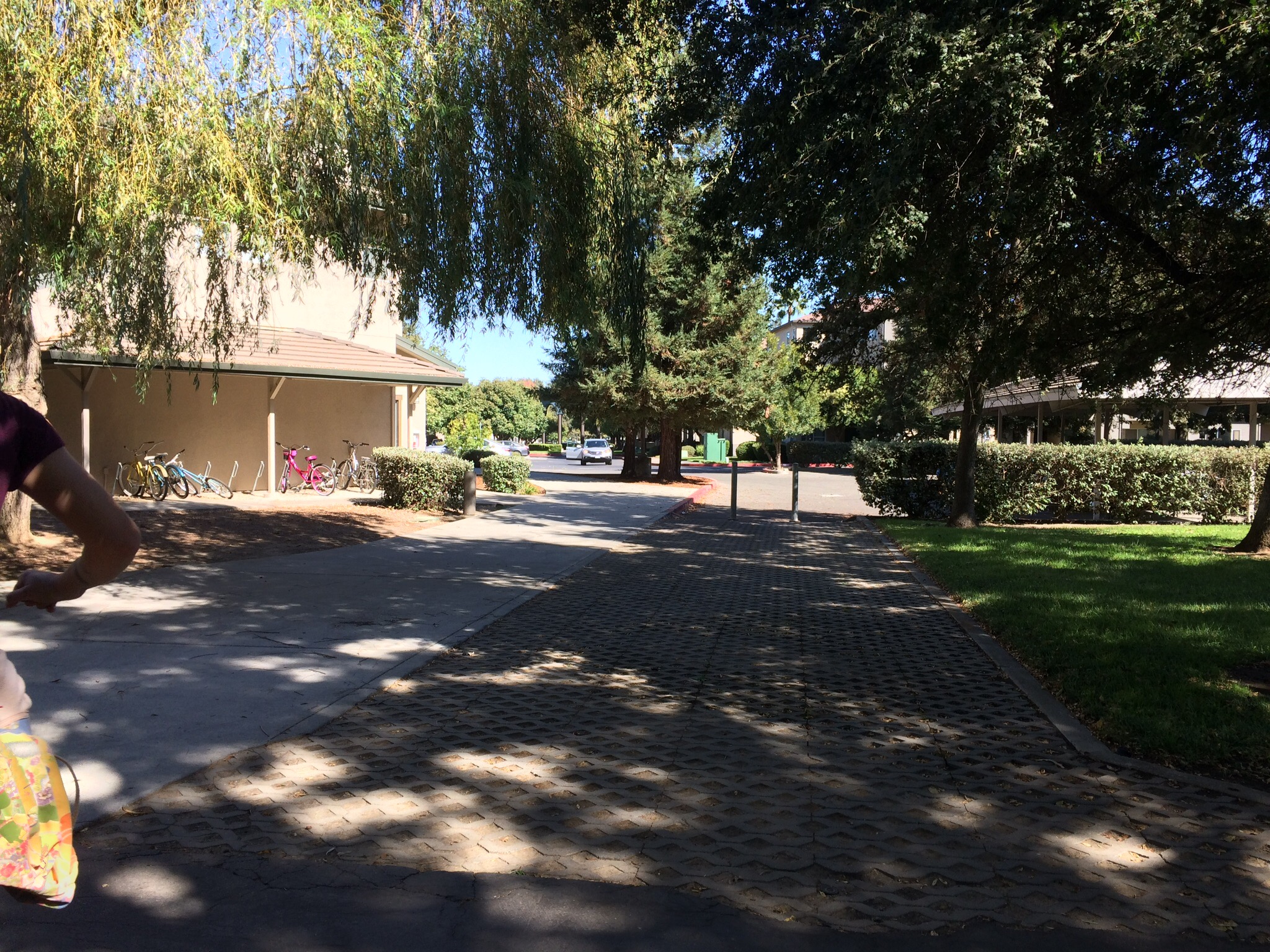 We enjoyed a delicious breakfast that included hard boiled eggs and fresh fruit, and said our good byes to Iris and Rafi. Iris had given us some tips about how to access the Columbia Trail from a driveway just across the road, rather than taking the longer way per Google maps. It was a beautiful morning, and I was excited about getting onto another bike trail, but the thrill went chill real fast. The Columbia Trail, at this segment at least, is a surface of big, loose rocks, much more suitable for a mountain bike than a road bike. El Cochinito was NOT happy, especially after all the flat tire trouble we’d been through the day before. I started getting nervous that this did not bode well for the rest of our journey. I began developing a steaming case of anger in my head, directed at our local bike shop guy back home who had convinced El Cochinito he could adapt his skinny-tired-aluminum-frame road bike for bike touring on trails. As soon as we got to an intersection with a road, we got off the trail and switched to Old Route 24. I was grumpy about being on the road instead of a trail, and struggled with thoughts running in my mind like: “What if the next segment of the trail was better and less rocky? or more beautiful?” “I was so excited to be riding trails on this trip, and now we have to ride on the shoulder and hope the drivers are nice. Is this what it will be like on all the trails?” “Why didn’t El Cochinito take my suggestion to get a proper touring bike for this trip?” Not a great state of mind to be in on the 2nd day of biking with my partner! But I knew the simple reality is that the trail was really rough, regardless of what kind of bike or tires we had, and it simply didn’t make sense to stay on it. No sense grumbling over what might have been anyway. Not that I was so quick to stop grumbling.