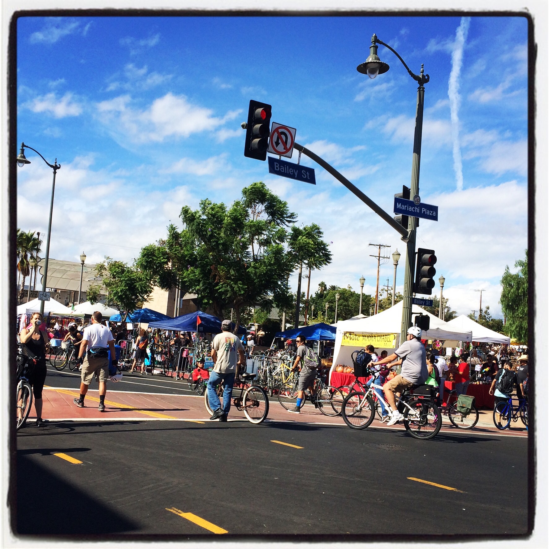 From the downtown hub, I followed the route over the 4th Street Bridge into Boyle Heights where the final CicLAvia hub was at Mariachi Plaza.